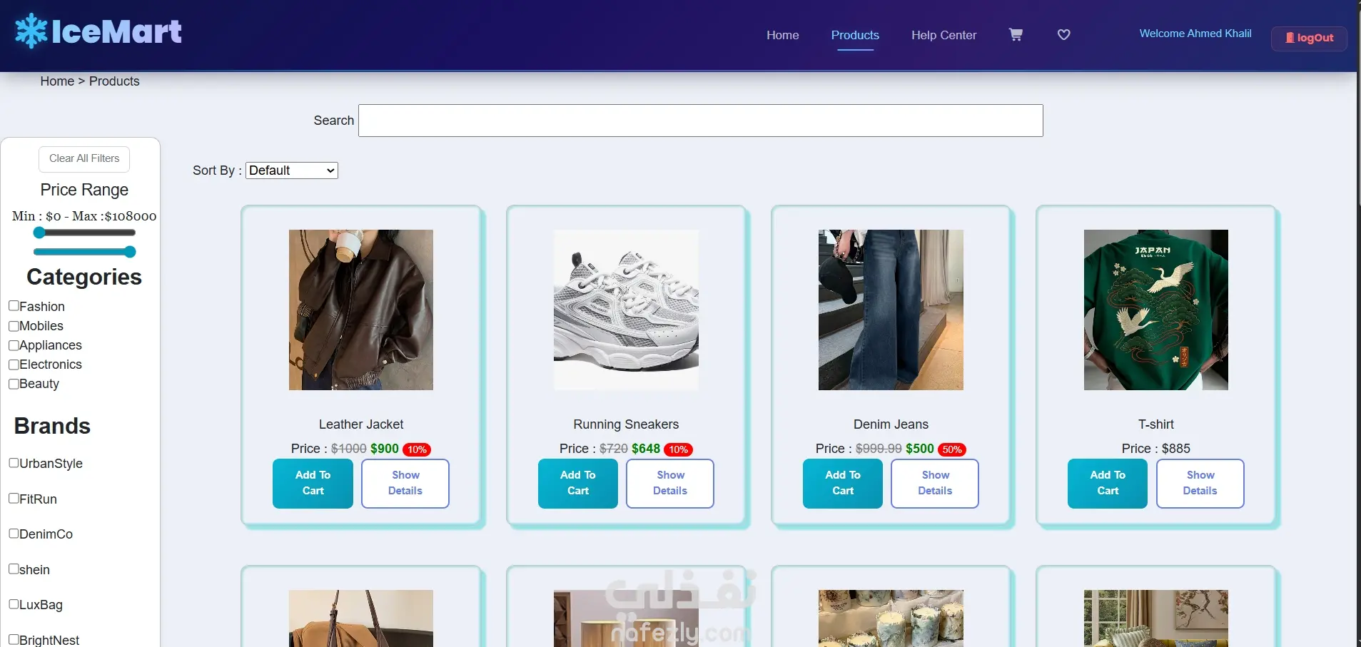 كتالوج منتجات متجر الكتروني بجميع الفلاتر الخاصة به