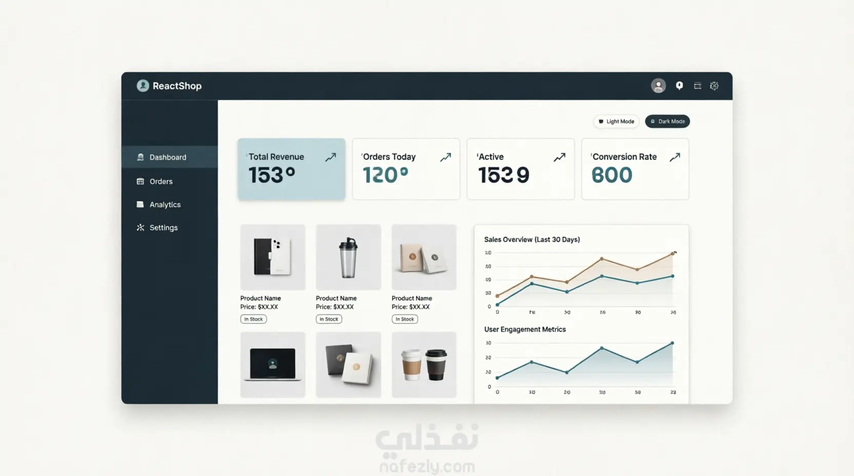 تطبيق React متكامل لإدارة متجر إلكتروني مع لوحة تحكم شاملة