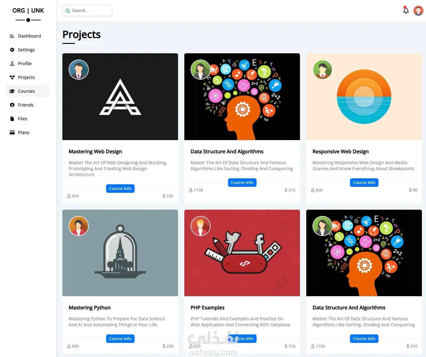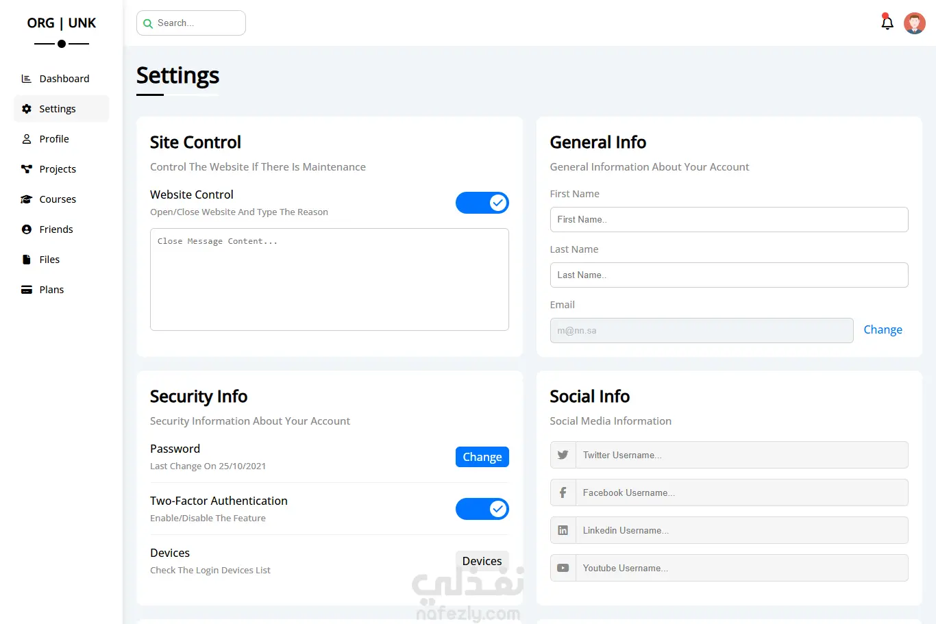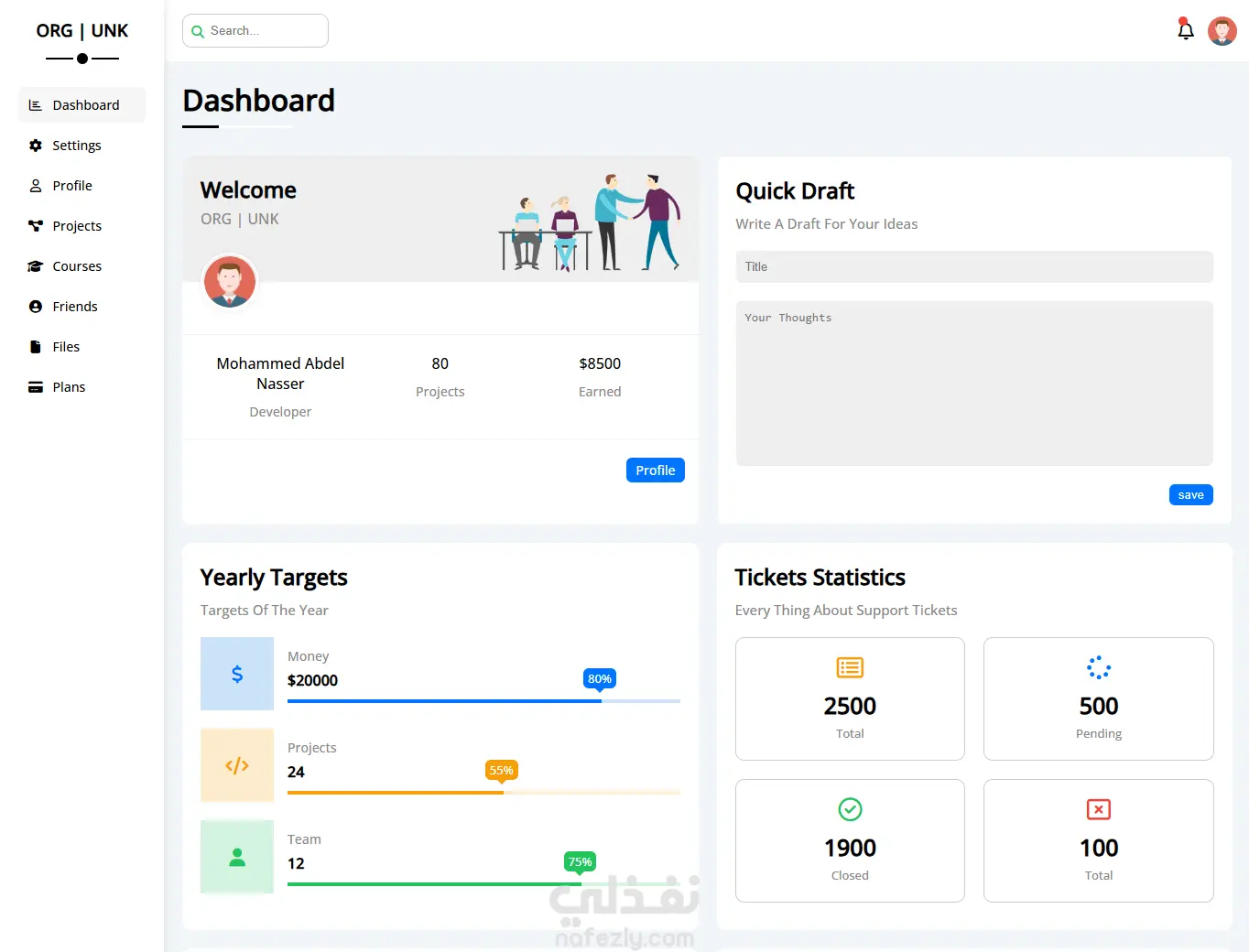 - لوحة تحكم احترافية بها عدة صفحات. (Dashboard)