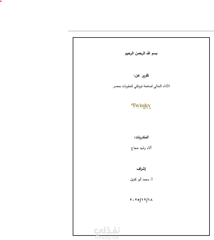تحليل استراتيجي شامل لأداء صفحة "Twinky Patisserie" على منصة Facebook بهدف قياس مستوى التفاعل، دراسة المنافسين، ووضع خطة تطوير عملية لتعزيز الحضور الرقمي وزيادة المبيعات.