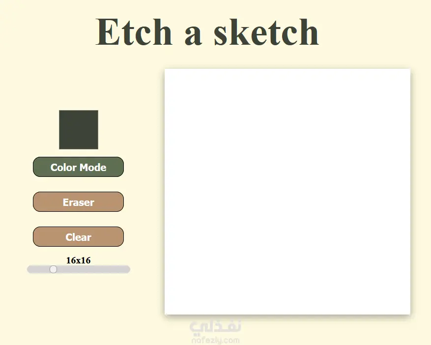 موقع يحاكي كراسة رسم فيه خاصية التلوين، المسح و تغيير مساحة المربع المستخدم. التقنيات المستخدمه: -HTML -CSS -ES6