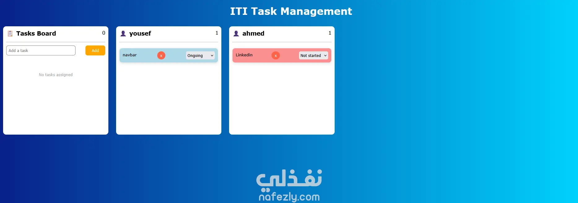 موقع لادارة المهام في بيئه agile. المهارات المستخدمه: ES6 HTML CSS3