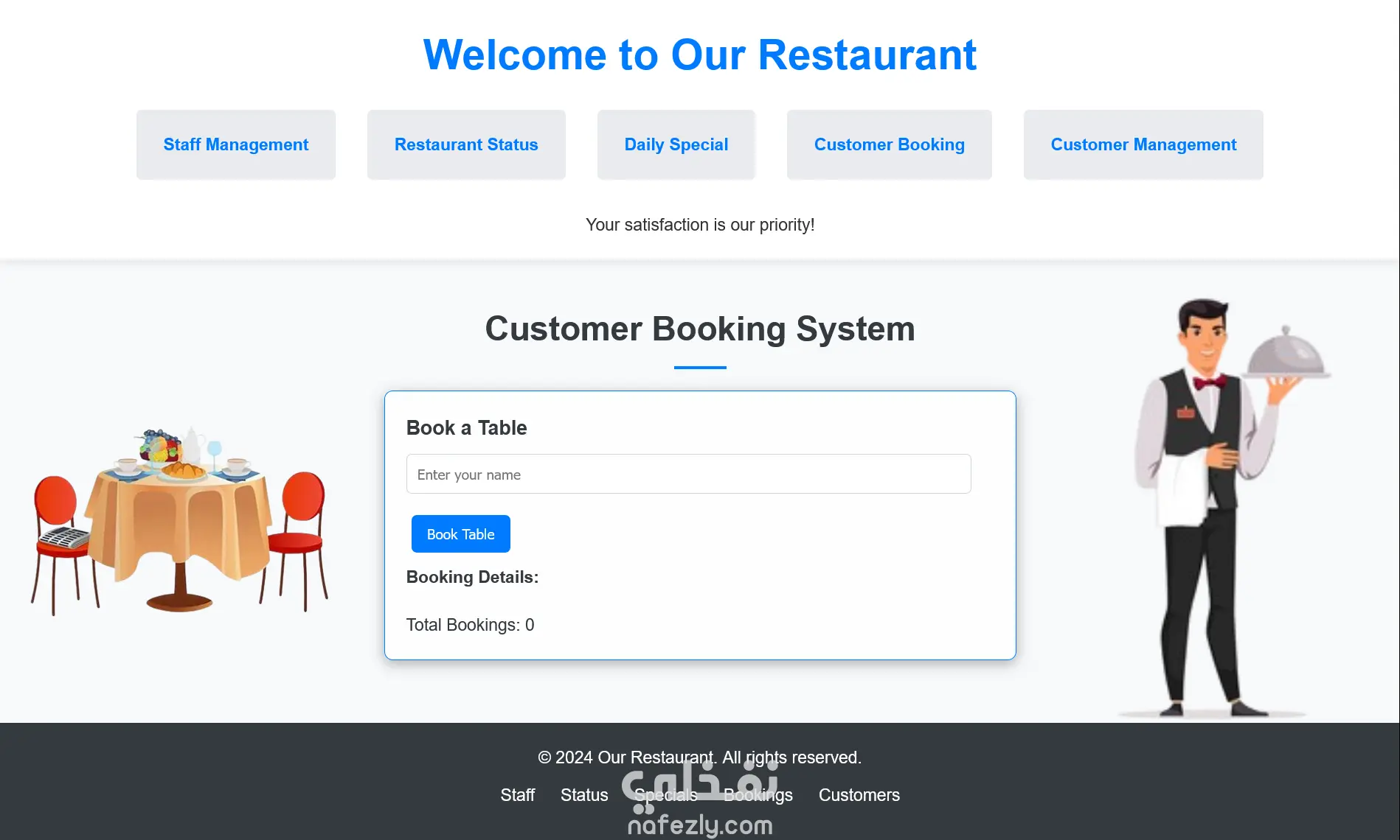 موقع ويب احترافي متجاوب مع جميع الأجهزة مبني بـ HTML5 وCSS3 وJavaScript. يشمل تصميم نظيف وكود منظم قابل للتعديل، مع التركيز على سرعة التحميل وتجربة المستخدم.