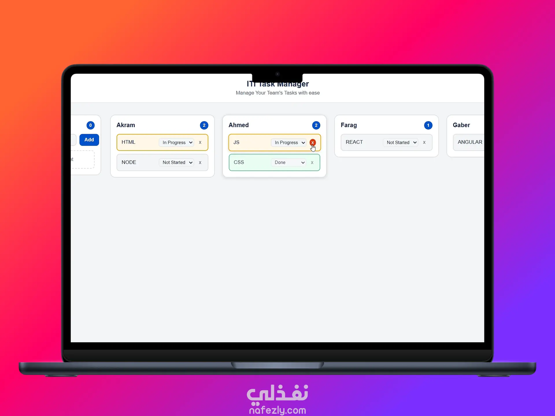 - خاصية السحب والإفلات (Drag and Drop API): إمكانية نقل المهام بين القوائم المختلفة (مثل: مهام جديدة، قيد التنفيذ، مكتملة) بسلاسة تامة.