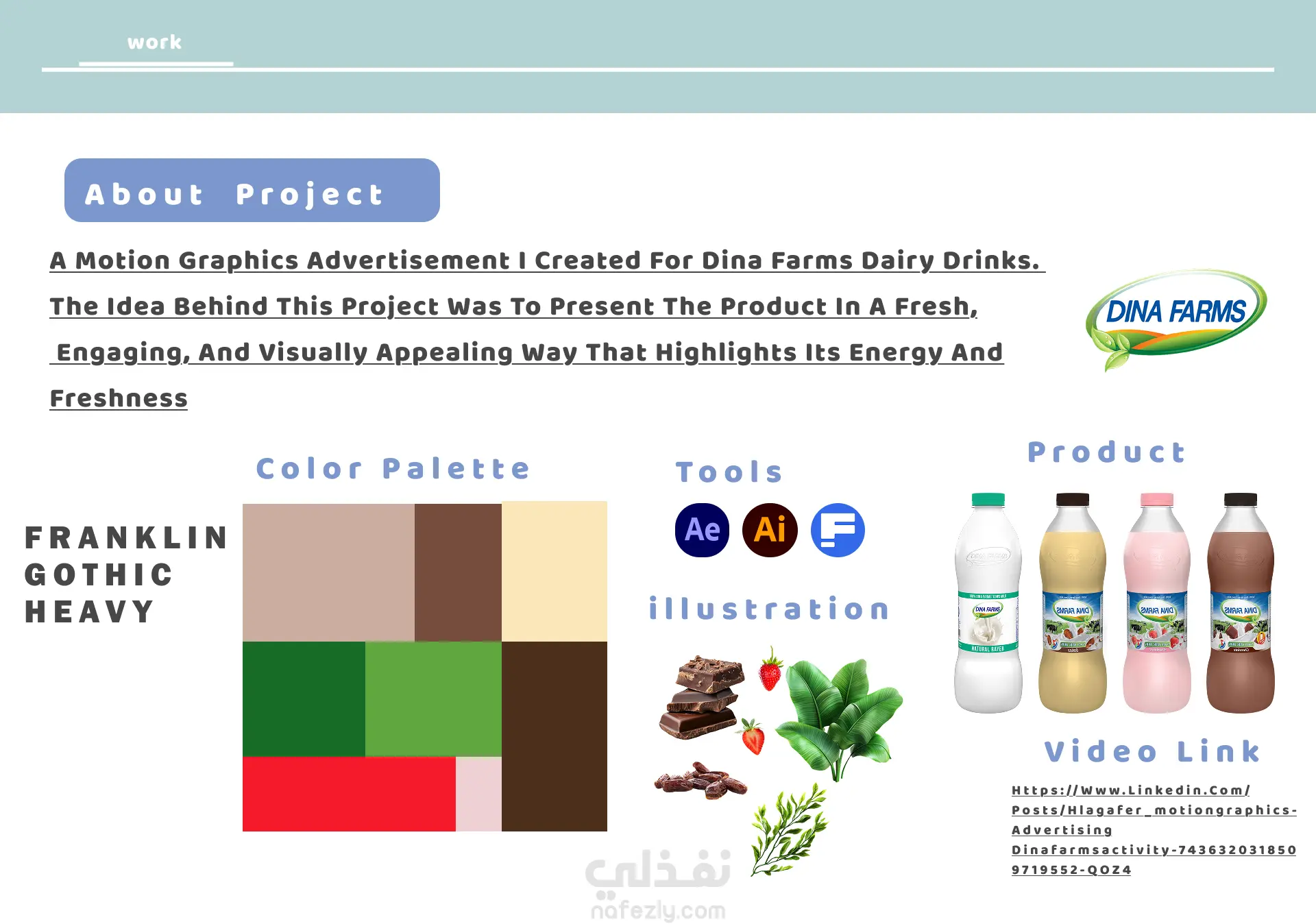 يركز العمل على دمج التصميم الجرافيكي مع الحركة لصناعة تجربة بصرية قصيرة ولكن مؤثرة، تعكس طبيعة المنتج وتقدم الفكرة بشكل بسيط وسهل التذكر للمشاهد