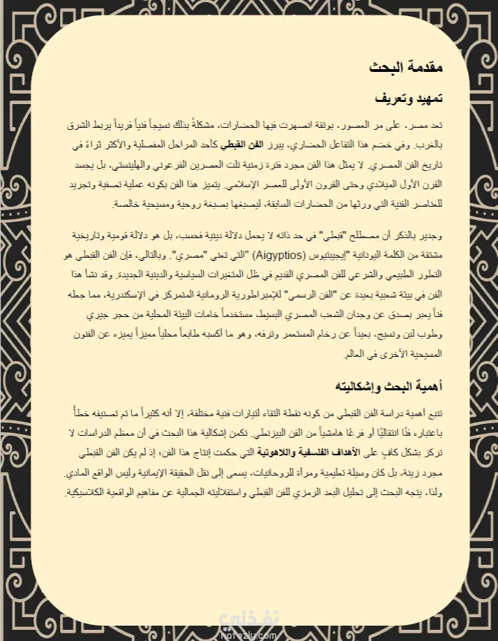 تنسيق بحث جامعي عن اهداف الفن القبطي وعلاقته بالفنون الأخرى