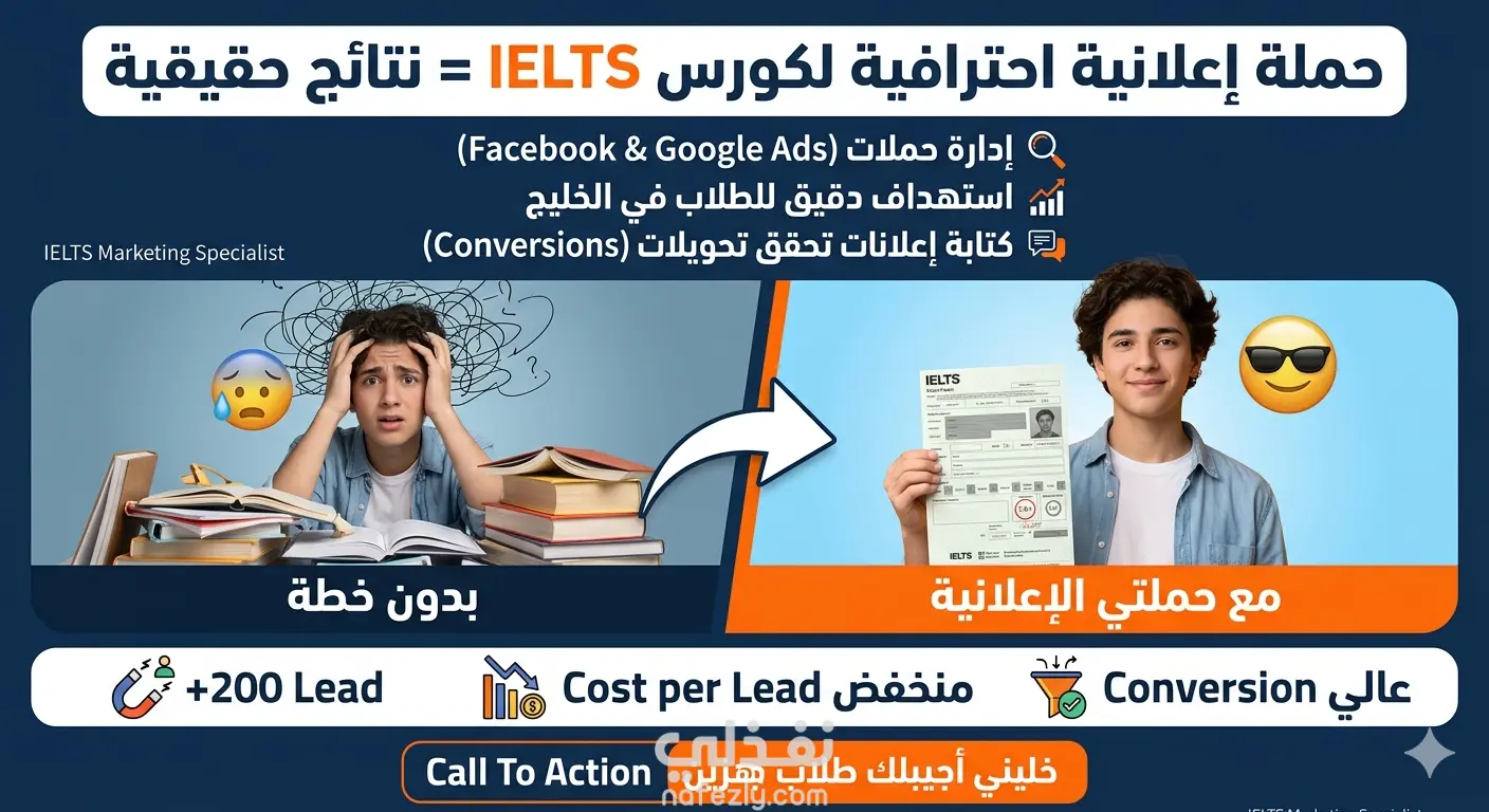إدارة حملة إعلانية احترافية لكورس IELTS وتحقيق Leads عالية الجودة