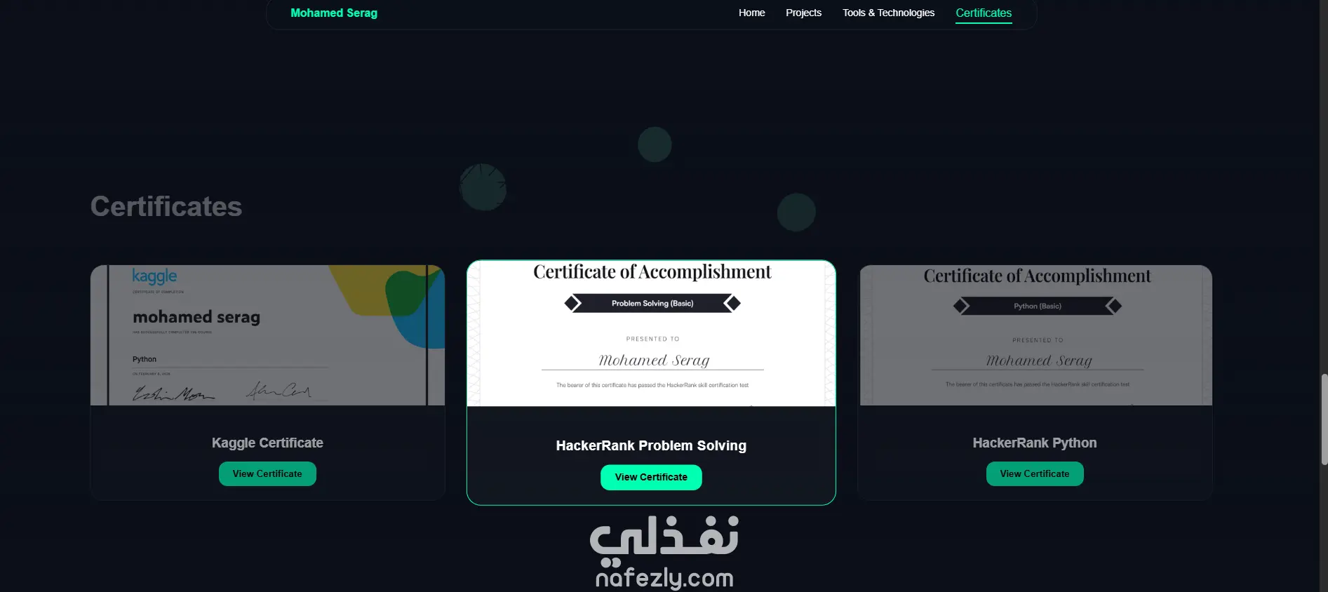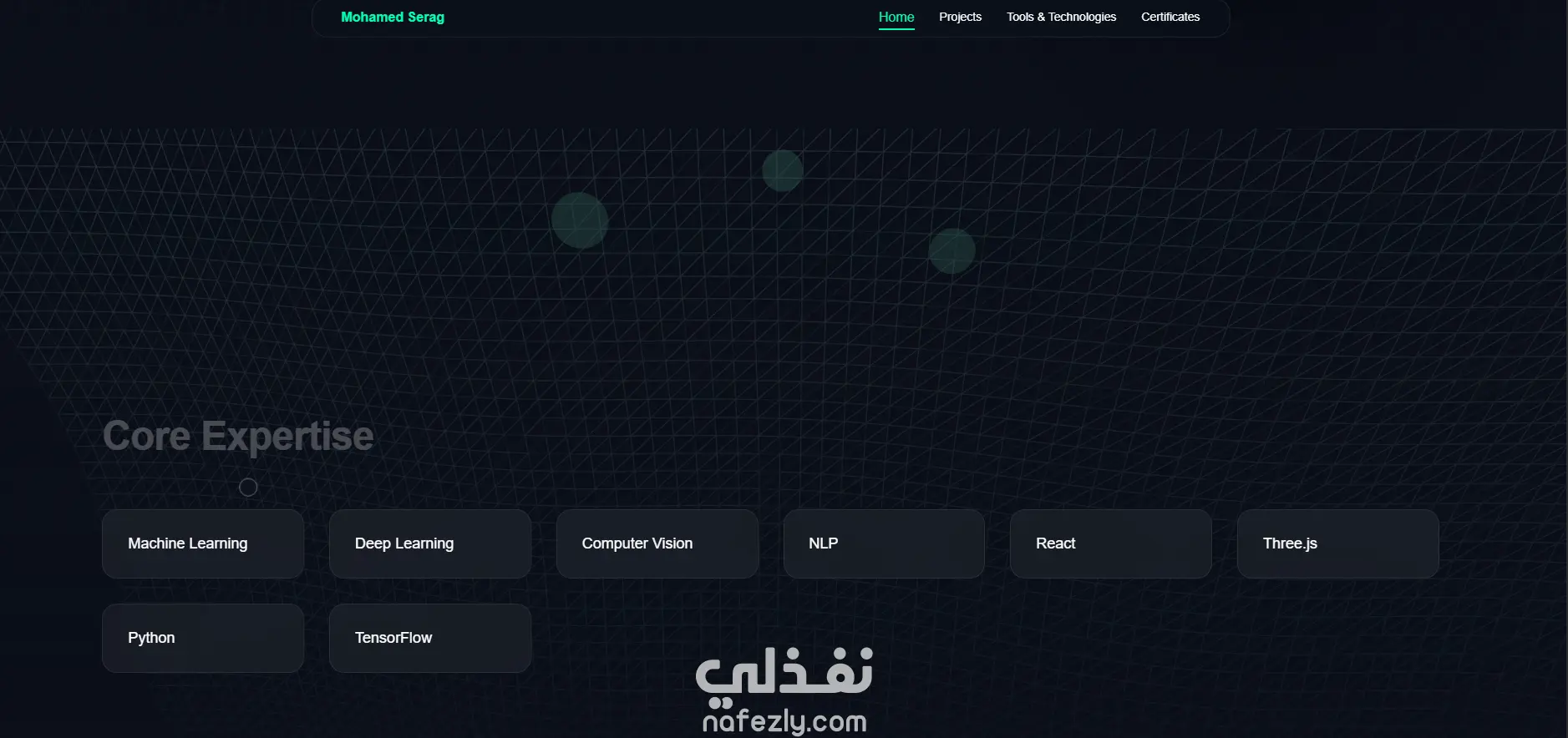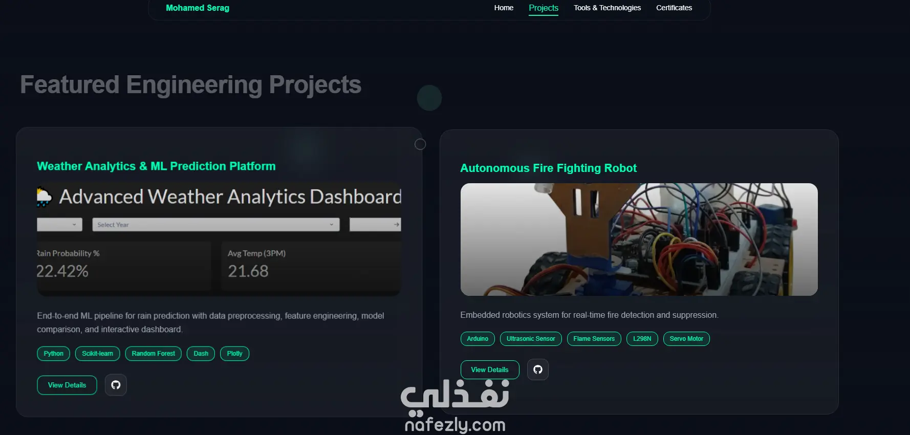 قمت بتصميم وتطوير موقع Portfolio شخصي احترافي لعرض مهاراتي ومشاريعي في مجال الذكاء الاصطناعي وتحليل البيانات.