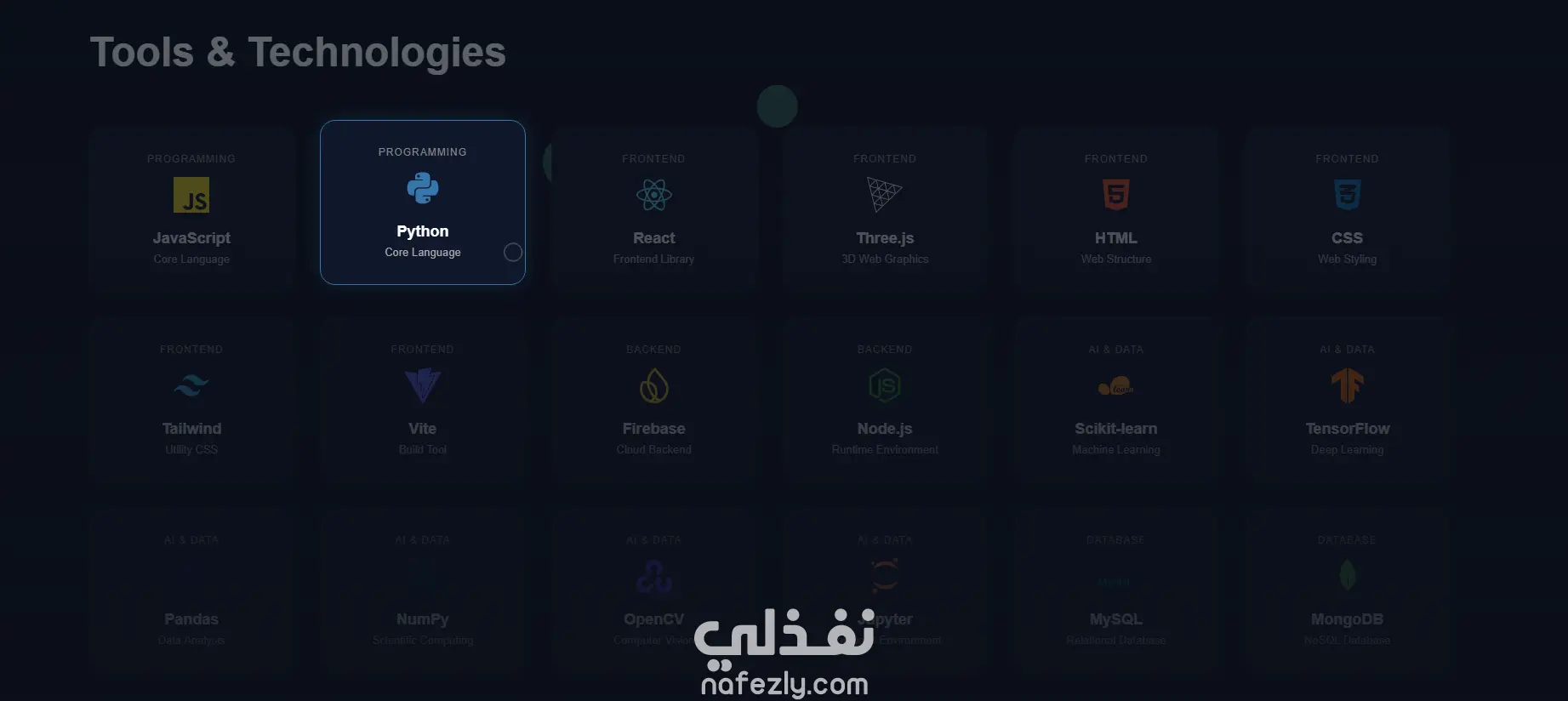 الموقع يهدف إلى تقديم هوية تقنية قوية تعكس خبرتي ومشاريعي بشكل منظم وجذاب بصريًا.