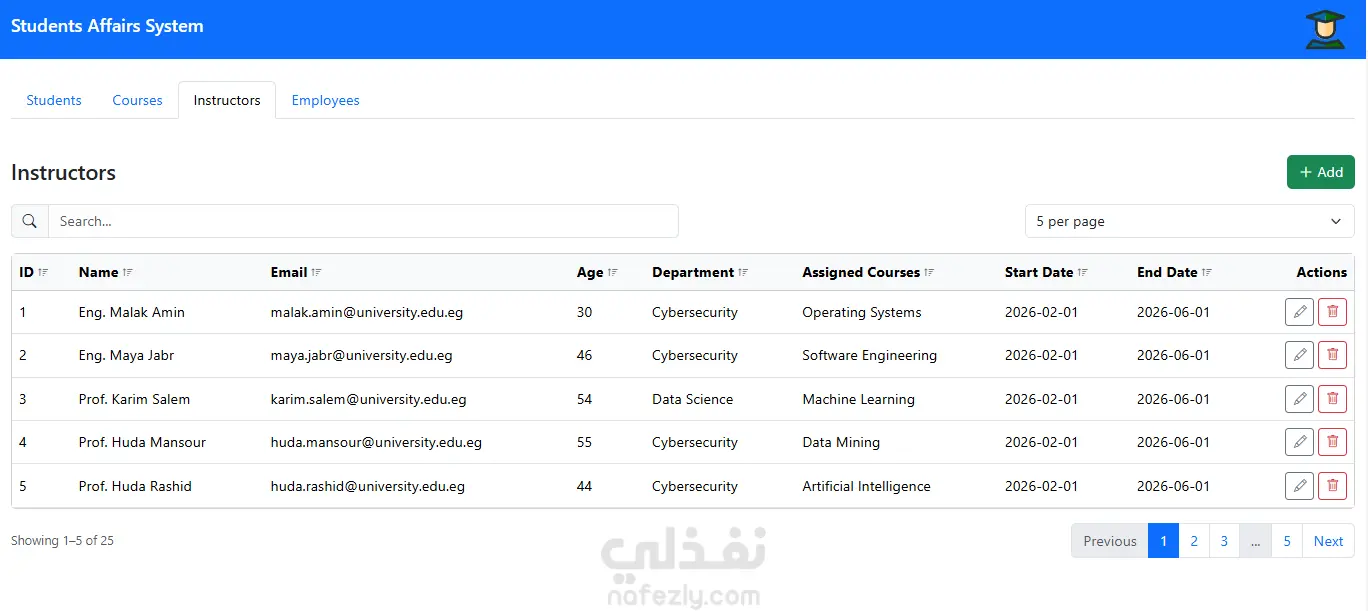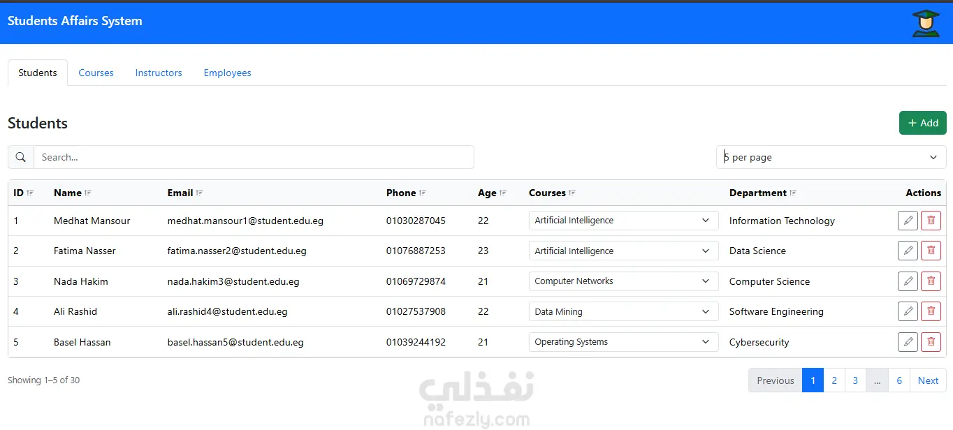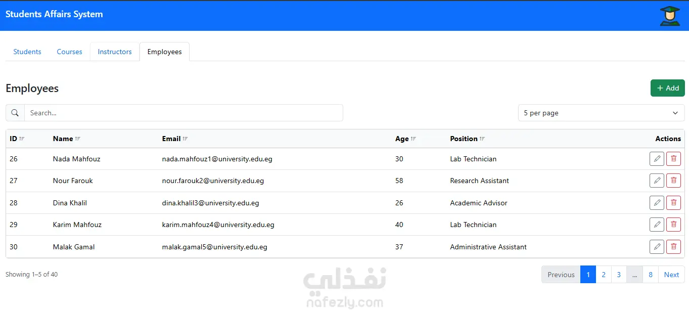قمت بتطوير نظام ويب متكامل لإدارة شؤون الطلاب، يهدف إلى تنظيم البيانات الأكاديمية والإدارية بشكل رقمي فعال. يتميز المشروع بواجهة مستخدم عصرية (Dashboard) توفر تجربة سلسة للمسؤولين لإدارة كافة جوانب العملية التعليمية. المميزات الرئيسية: إدارة بيانات الطلاب: إمكانية إضافة، تعديل، وحذف بيانات الطلاب مع تنظيمها في جداول تفاعلية. فلترة وبحث ذكي: توفير أدوات متقدمة للوصول السريع للمعلومات المطلوبة داخل النظام. تتبع الحالة الأكاديمية: مراقبة وتحديث حالة الطلاب والنتائج بشكل لحظي.