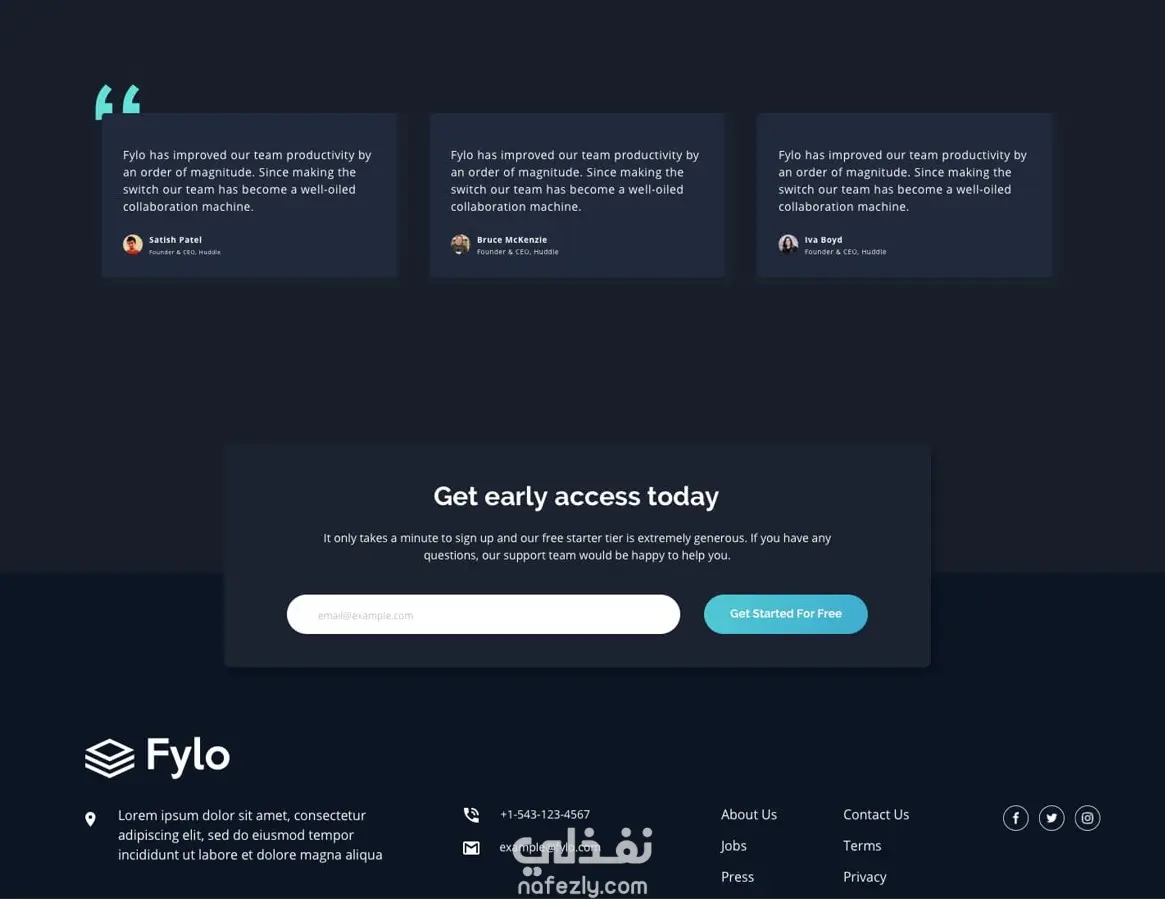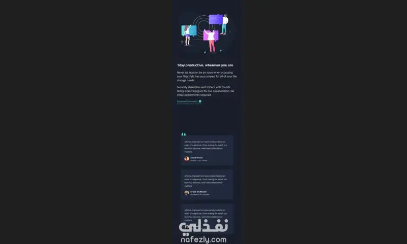 قمت بتطوير صفحة هبوط متكاملة لمنصة "Fylo" لتخزين البيانات، مع التركيز الكامل على تقديم تجربة مستخدم (UX) سلسة وتصميم واجهة (UI) عصري وجذاب بنظام "الوضع الداكن" (Dark Theme). تم تحويل التصميم من ملفات صورية إلى كود برمجى نظيف وعالي الأداء.