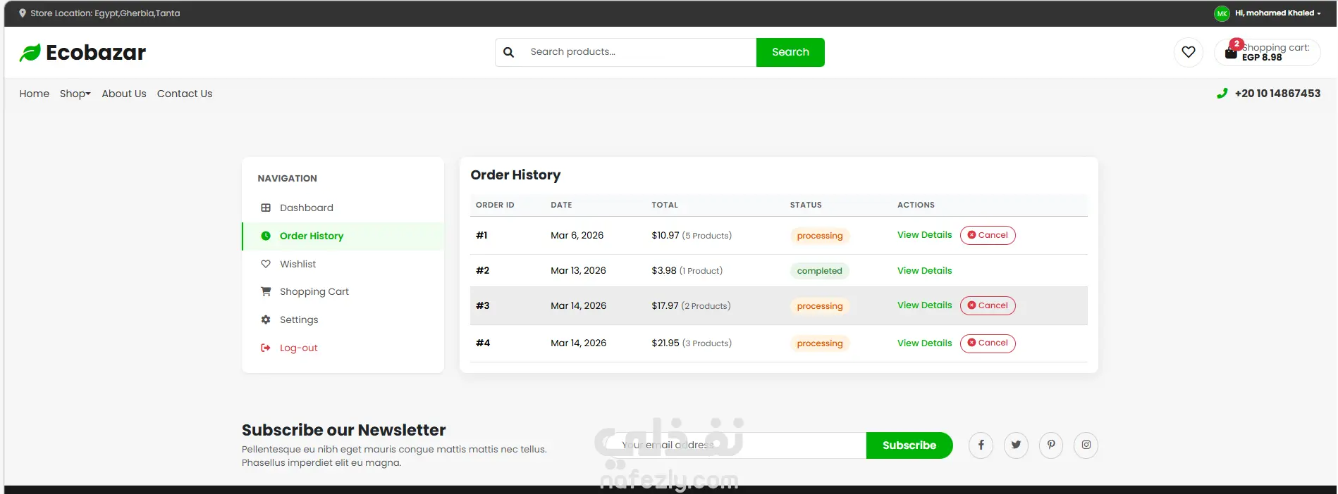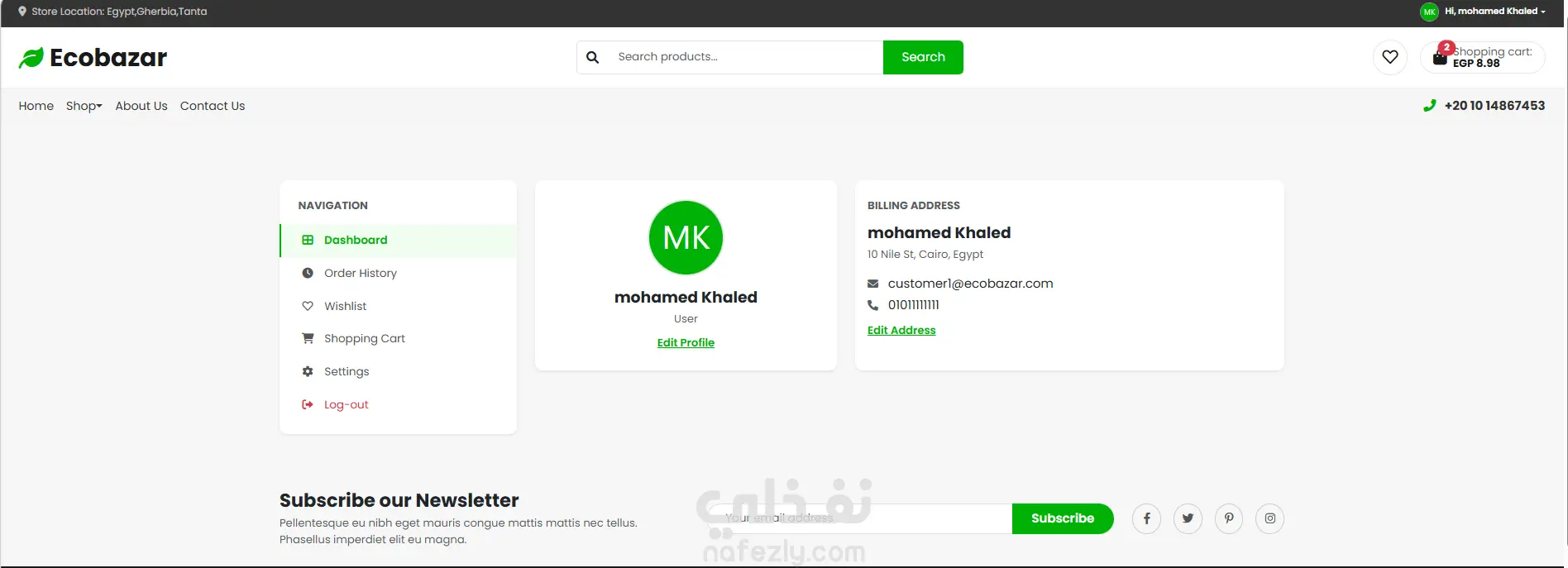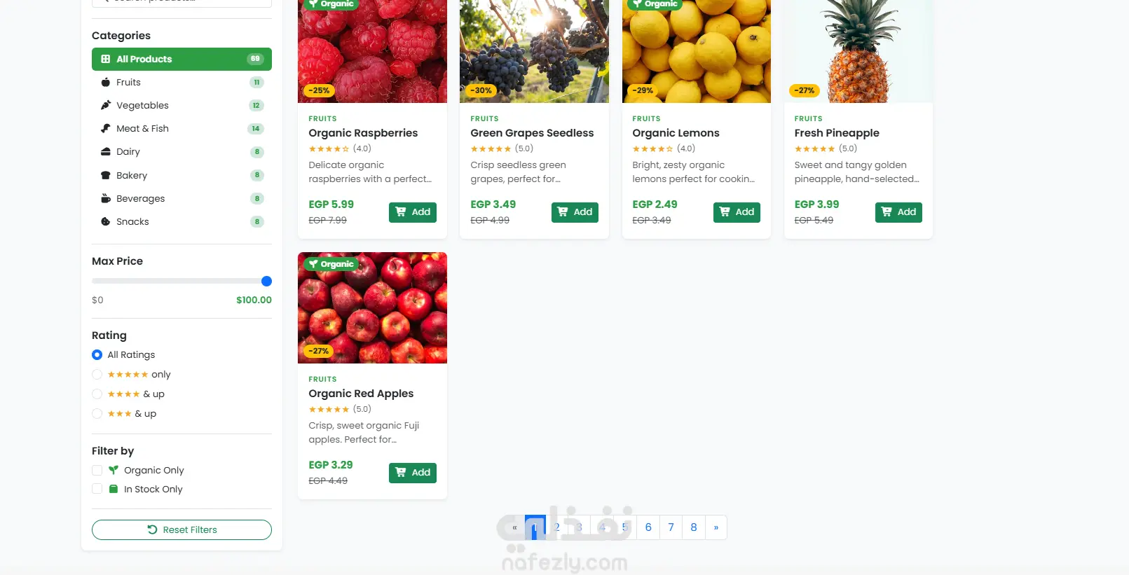 يمثل هذا المشروع تصميم وتنفيذ واجهة المستخدم الأمامية (Front-End) لمتجر EcoBazar، وهو منصة تجارة إلكترونية متخصصة في بيع المنتجات الغذائية العضوية والطازجة. تم التركيز في هذا العمل على دمج التصميم العصري الجذاب مع معايير تجربة المستخدم (UX) العالمية لضمان رحلة تسوق سلسة ومنطقية ترفع من نسب التحويل والمبيعات. أبرز الجوانب الفنية والتقنية للمشروع: التصميم المتجاوب الكامل (Fully Responsive): تم بناء الواجهة لتكون متوافقة تماماً مع كافة أحجام الشاشات، بدءاً من الهواتف الذكية وحتى شاشات الحاسوب المكتبية الكبيرة، مع الحفاظ على تناسق العناصر وسهولة الاستخدام. هوية بصرية معبرة: استخدام لوحة ألوان مستوحاة من الطبيعة (اللون الأخضر ودرجاته) تعكس بوضوح طبيعة المنتجات العضوية والطازجة وتخلق جواً من الثقة. أداء عالي وسرعة تصفح: تم تحسين الكود البرمجي والصور لضمان تحميل الصفحات بسرعة فائقة، مما يعزز تجربة المستخدم ويحسن من أرشفة الموقع في محركات البحث (SEO). تفاصيل الصفحات والأجزاء الرئيسية المدرجة في هذا العمل: الصفحة الرئيسية (Homepage): هيدر (Header) متكامل: يحتوي على الشعار، شريط بحث ذكي، أيقونات الحساب والسلة مع العداد التفاعلي، وقائمة تصفح رئيسية. قسـم العروض (Hero Section): بانر تفاعلي جذاب لعرض أهم المنتجات والعروض الترويجية. المنتجات الأكثر مبيعاً (Popular Products): شبكة عرض لعناصر المنتجات (Product Cards) تحتوي على صورة المنتج، الاسم، التقييم بالنجوم، السعر، ونسبة الخصم بدقة ووضوح. العروض المؤقتة (Hot Deals): جزء مخصص للمنتجات ذات الخصومات الكبيرة، مزود بـعداد تنازلي (Countdown Timer) تفاعلي لخلق حس الاستعجال. صفحة المتجر الشاملة (All Products / Shop): تخطيط شبكي منظم: لعرض كافة المنتجات المتاحة للبيع. نظام فلترة وبحث متقدم في الجانب (Sidebar Filters): يتيح للعميل تخصيص بحثه بدقة عبر خيارات متعددة (تصنيف المنتجات، شريط سحب للسعر (Price Range Slider)، التقييم بالنجوم، والوسوم). نظام ترقيم صفحات (Pagination): لضمان تصفح سهل ومنظم للمجموعات الكبيرة من المنتجات دون التأثير على سرعة التحميل. صفحات التعريف والثقة (About & Contact): صفحة "من نحن" (About Us): قسـم مصمم بسرد بصري يوضح قصة المتجر وفريق العمل لتعزيز الثقة. صفحة "اتصل بنا" (Contact Us): تحتوي على نموذج اتصال تفاعلي للعملاء، بالإضافة إلى خريطة تفاعلية (Google Maps) ومعلومات الاتصال. واجهة تسجيل الدخول (Sign In Interface): تصميم نظيف وبسيط لواجهة الدخول وإنشاء الحساب.