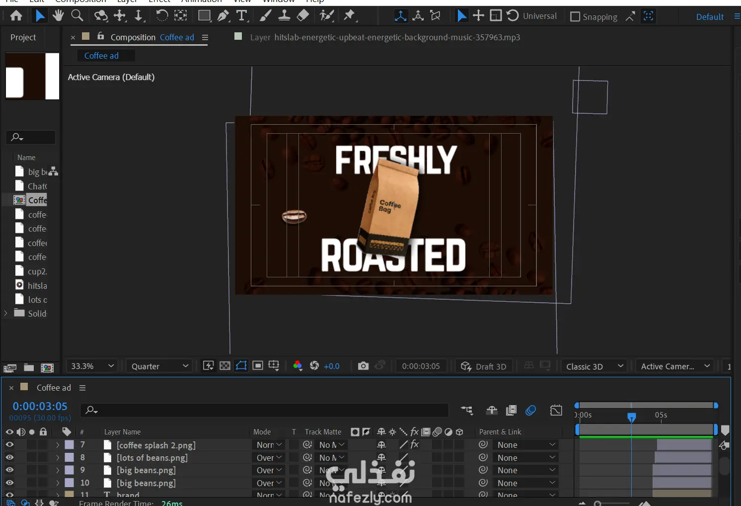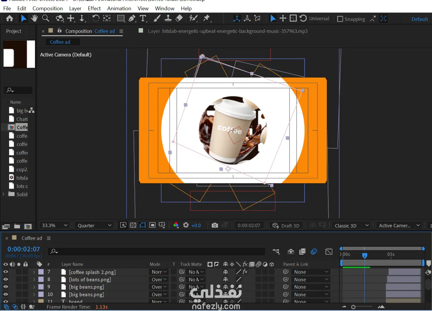 ريل لمنتج قهوة يركز على الايقاع السريع والهوية البصرية للعلامة التجارية يصلح لمنصات السوشيال ميديا مثل انستغرام وفيسبوك وتيك توك البرامج المستخدمة adobe aftereffect, adobe Photoshop