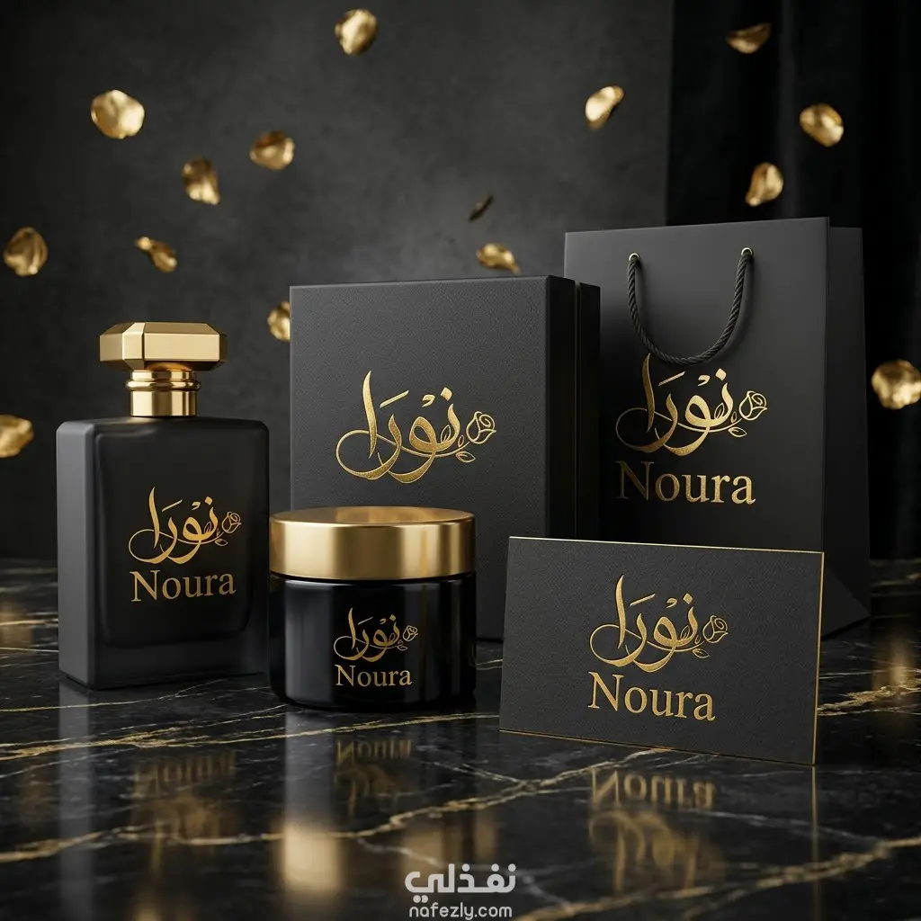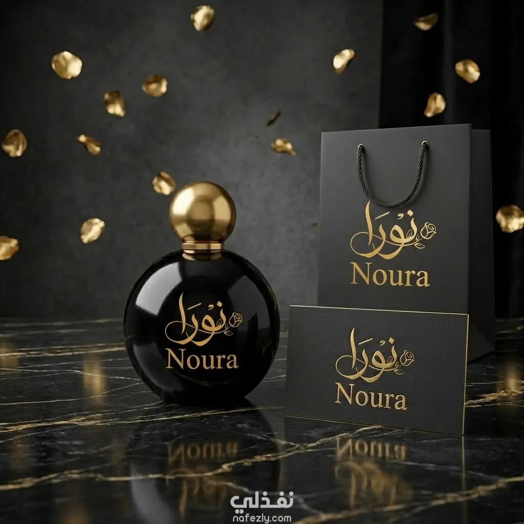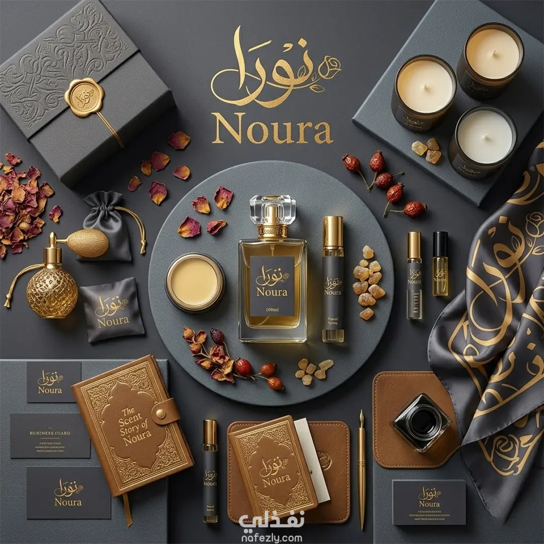تم تصميم هوية بصرية متكاملة لعلامة عطور نسائية باسم "NOURA"، حيث يجسد التصميم الفخامة والأنوثة من خلال مزيج راقٍ من اللون الأسود والذهبي.