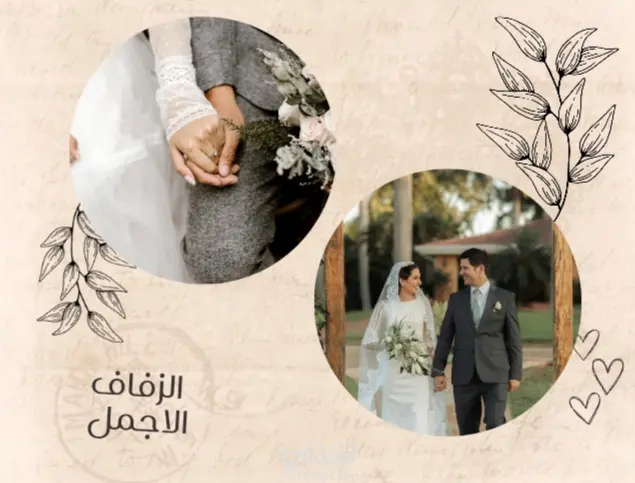 دعوة فرح بتصميم أنيق وجذاب يمكن استخدامها للطباعة أو النشر الإلكتروني.