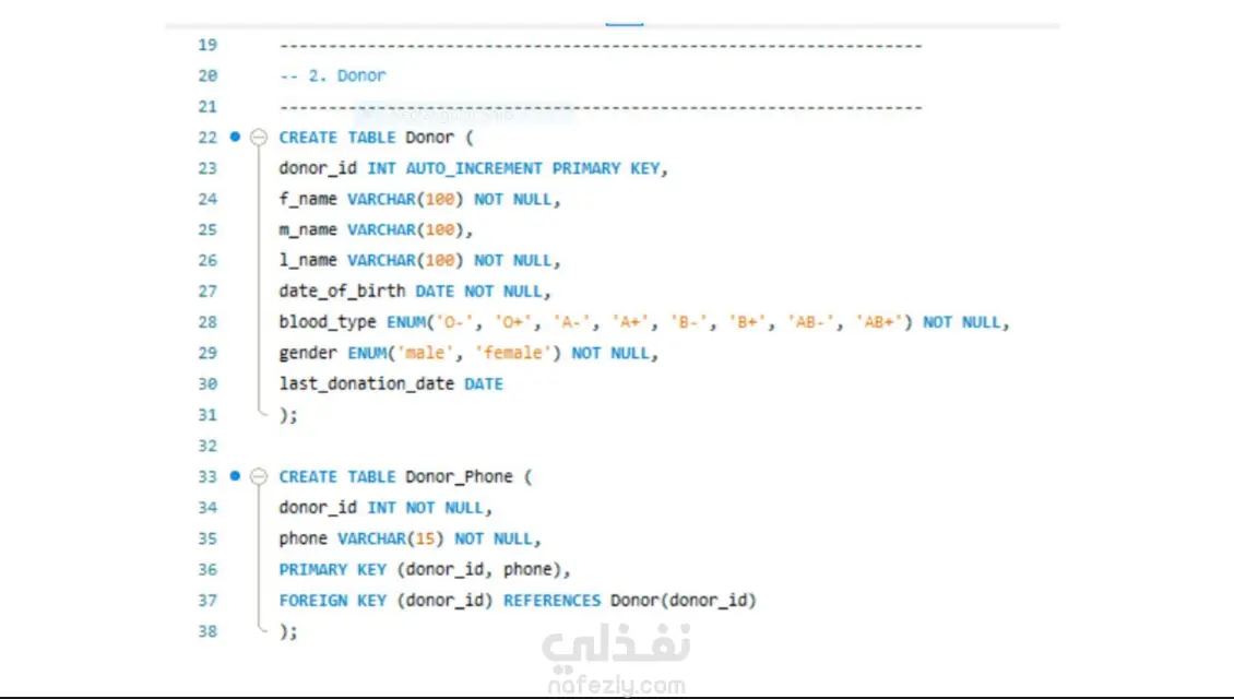 قمت بتصميم وتطوير قاعدة بيانات متكاملة لإدارة نظام التبرع بالدم باستخدام MySQL، بهدف تنظيم بيانات المتبرعين والمستشفيات وعمليات التبرع.