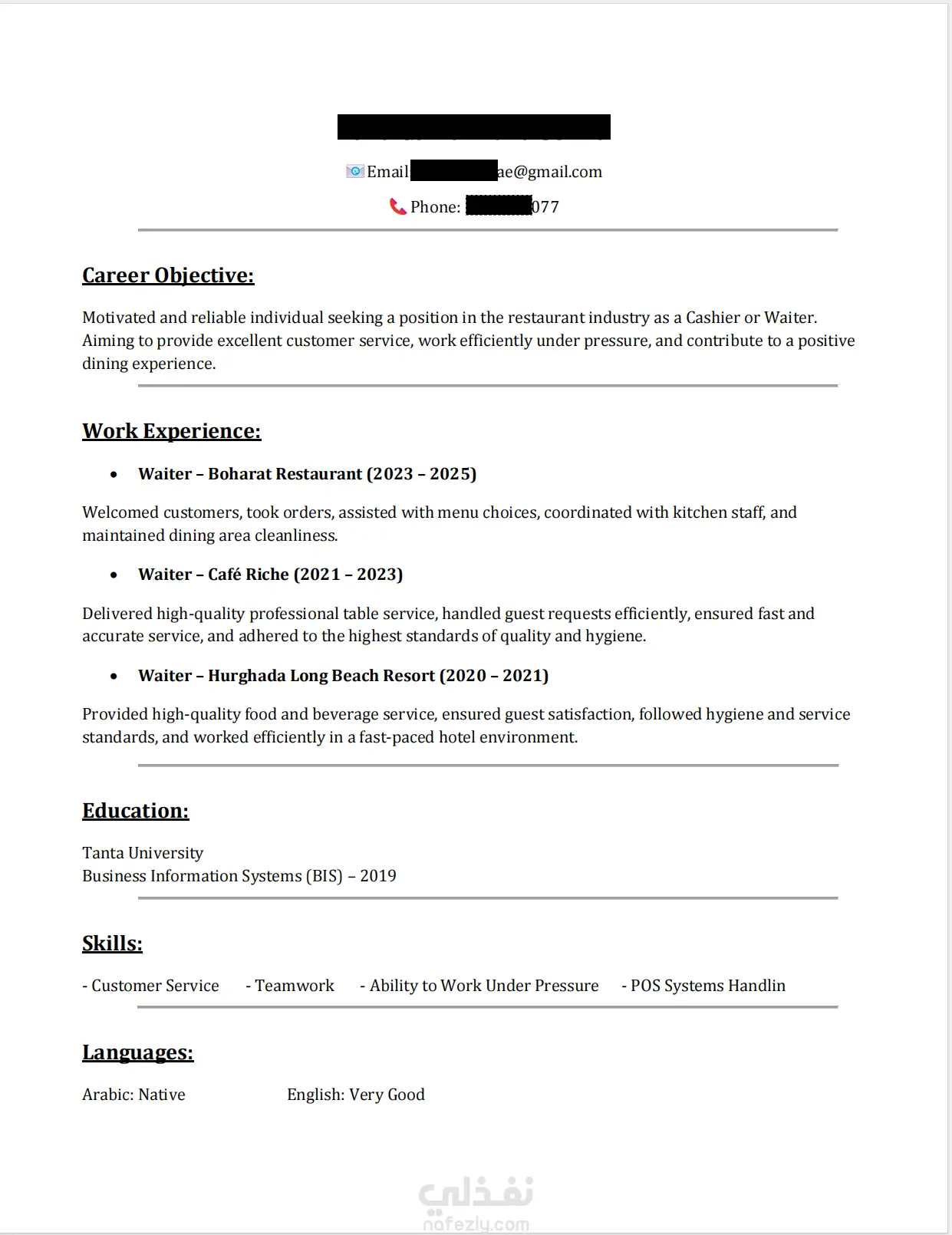 انشاء سيرة ذاتية احترافيه (CV)
