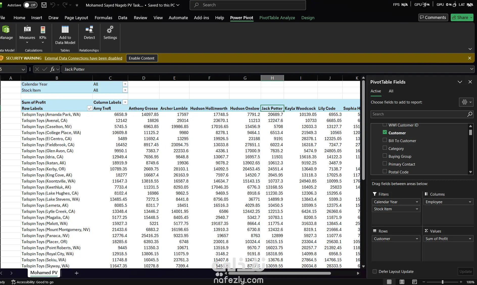 اشتغلت على مشروع تحليل بيانات مبيعات باستخدام Power Pivot في Excel، عملت فيه Data Model وربطت بين كذا جدول، وبعدها استخدمت Pivot Tables علشان أحلل الأرباح وأقارن أداء العملاء والمندوبين والمنتجات. المشروع خلاني أتعلم أتعامل مع داتا كبيرة وأطلع منها معلومات مفيدة.