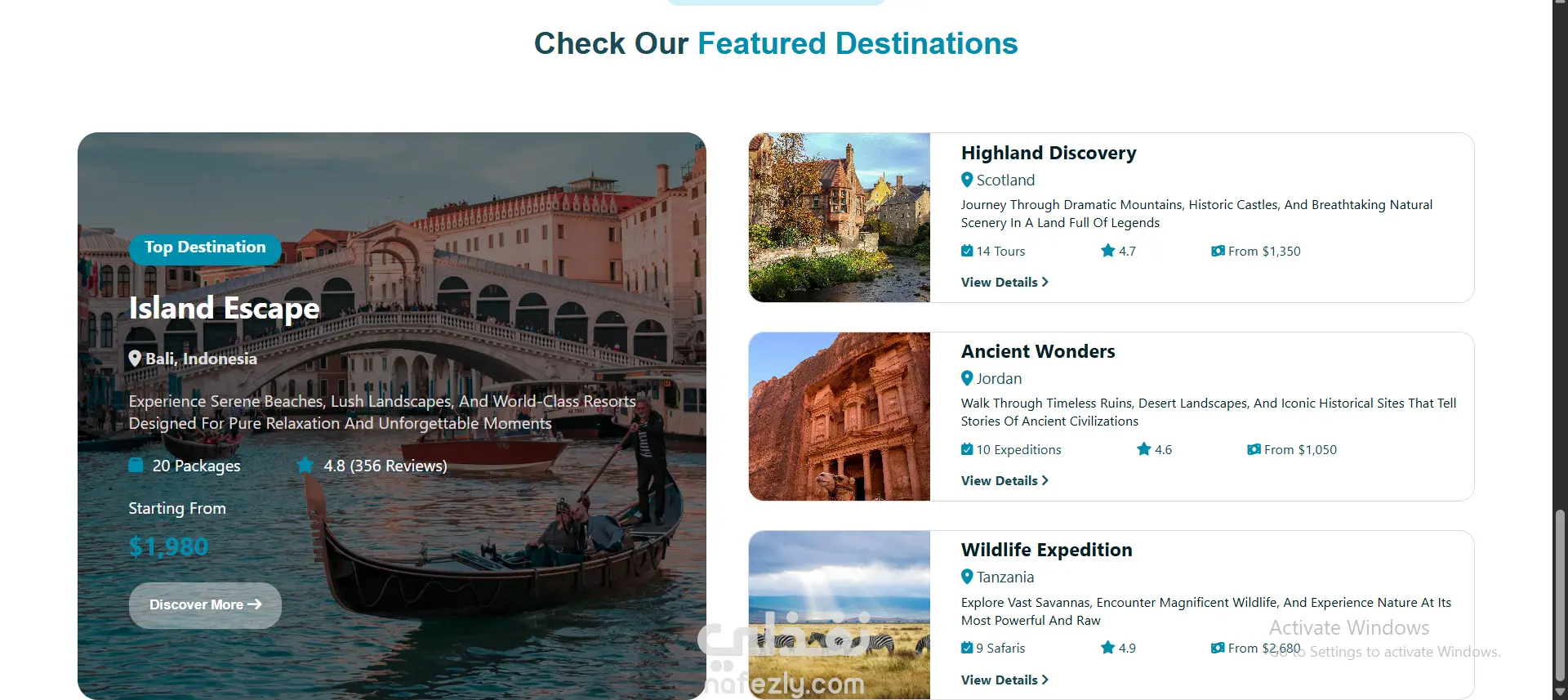 Landing Page احترافية لشركة سفر وسياحه