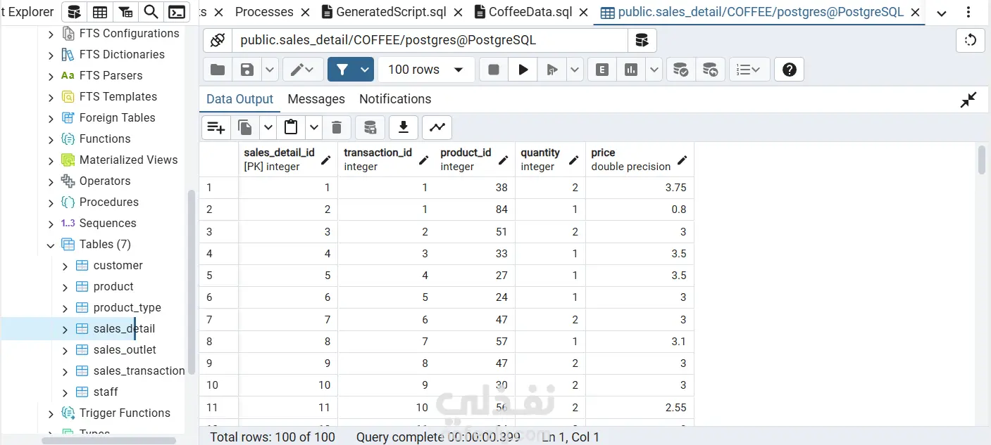 Designed and implemented a relational database system for a coffee shop sales environment. The project includes database schema design, entity relationships, and transaction tracking using PostgreSQL and MySQL. The system manages products, product types, sales transactions, and sales details, enabling efficient storage and analysis of sales data. SQL queries were used to analyze product performance, sales trends, and transaction records.