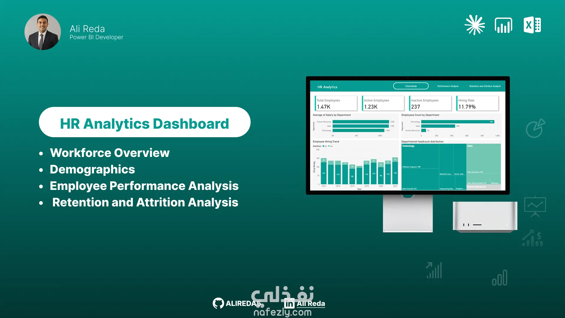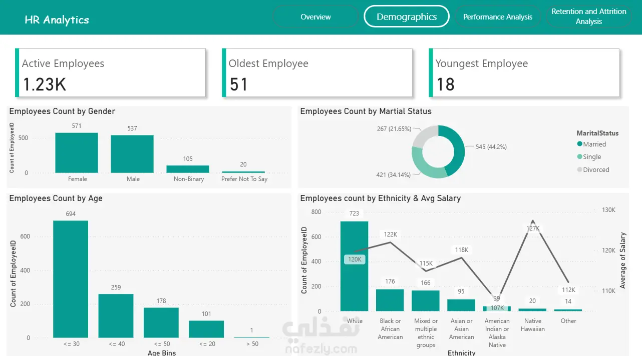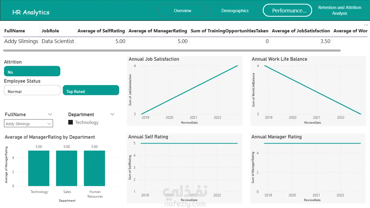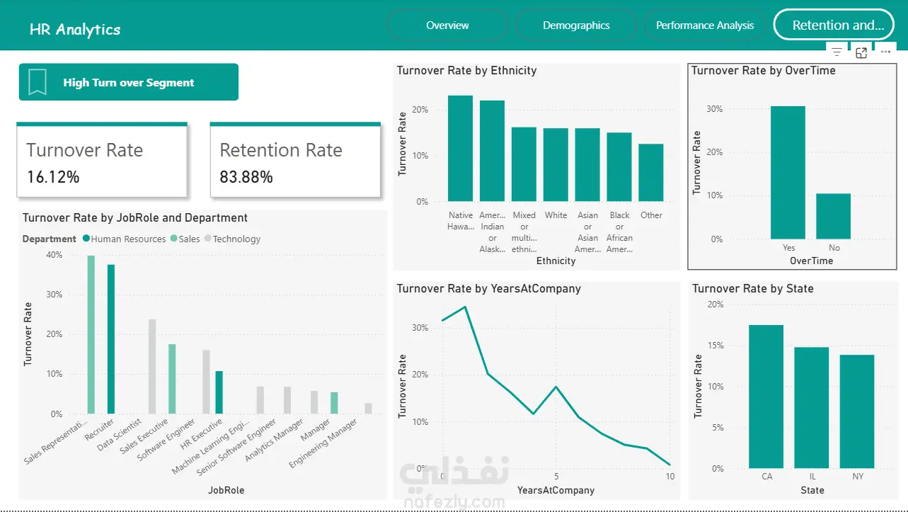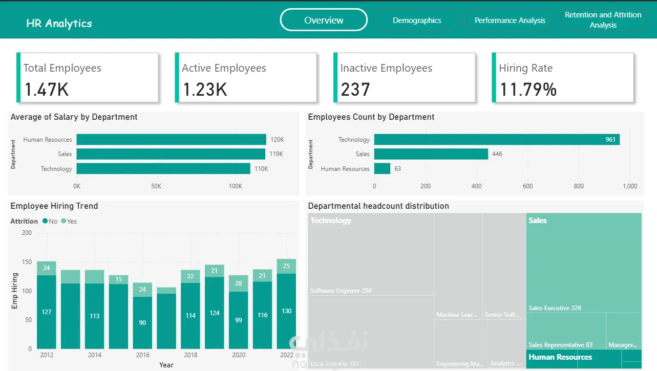 قمت بتنفيذ تحليل شامل لبيانات الموارد البشرية بهدف مساعدة الإدارة على اتخاذ قرارات مبنية على البيانات بدلاً من التقديرات. ركز المشروع على تحويل بيانات الموظفين إلى رؤى واضحة تساعد في فهم هيكل الشركة، أداء الموظفين، ومشاكل الاستقالة والاحتفاظ بالكفاءات. شمل العمل تحليل عدد الموظفين وتوزيعهم على الأقسام والوظائف، بالإضافة إلى دراسة الخصائص الديموغرافية مثل العمر والجنس والحالة الاجتماعية ومستوى الخبرة. كما قمت بتحليل أداء الموظفين وتحديد الأقسام والفرق الأعلى إنتاجية، مع توضيح تأثير التدريب والتطوير على مستوى الأداء. ومن أهم أجزاء المشروع تحليل معدل الاستقالة (Attrition) وتحديد الأقسام التي تعاني من فقدان الموظفين بشكل أكبر، بالإضافة إلى اكتشاف العوامل التي قد تؤثر على بقاء الموظف داخل الشركة مثل الخبرة والراتب وطبيعة القسم. تم عرض النتائج من خلال تقارير تحليلية ولوحات معلومات (Dashboards) تفاعلية توضح أهم مؤشرات الأداء مثل عدد الموظفين، معدل التوظيف، معدل الاستقالة، ومتوسط تقييم الأداء، مما يساعد إدارة الموارد البشرية على اتخاذ قرارات أكثر دقة وتحسين استراتيجيات التوظيف والاحتفاظ بالموظفين. إذا كنت تبحث عن تحليل احترافي لبيانات الموظفين وتحويلها إلى قرارات عملية تساعد على تطوير شركتك، فهذا النوع من المشاريع هو ما أقدمه لعملائي.