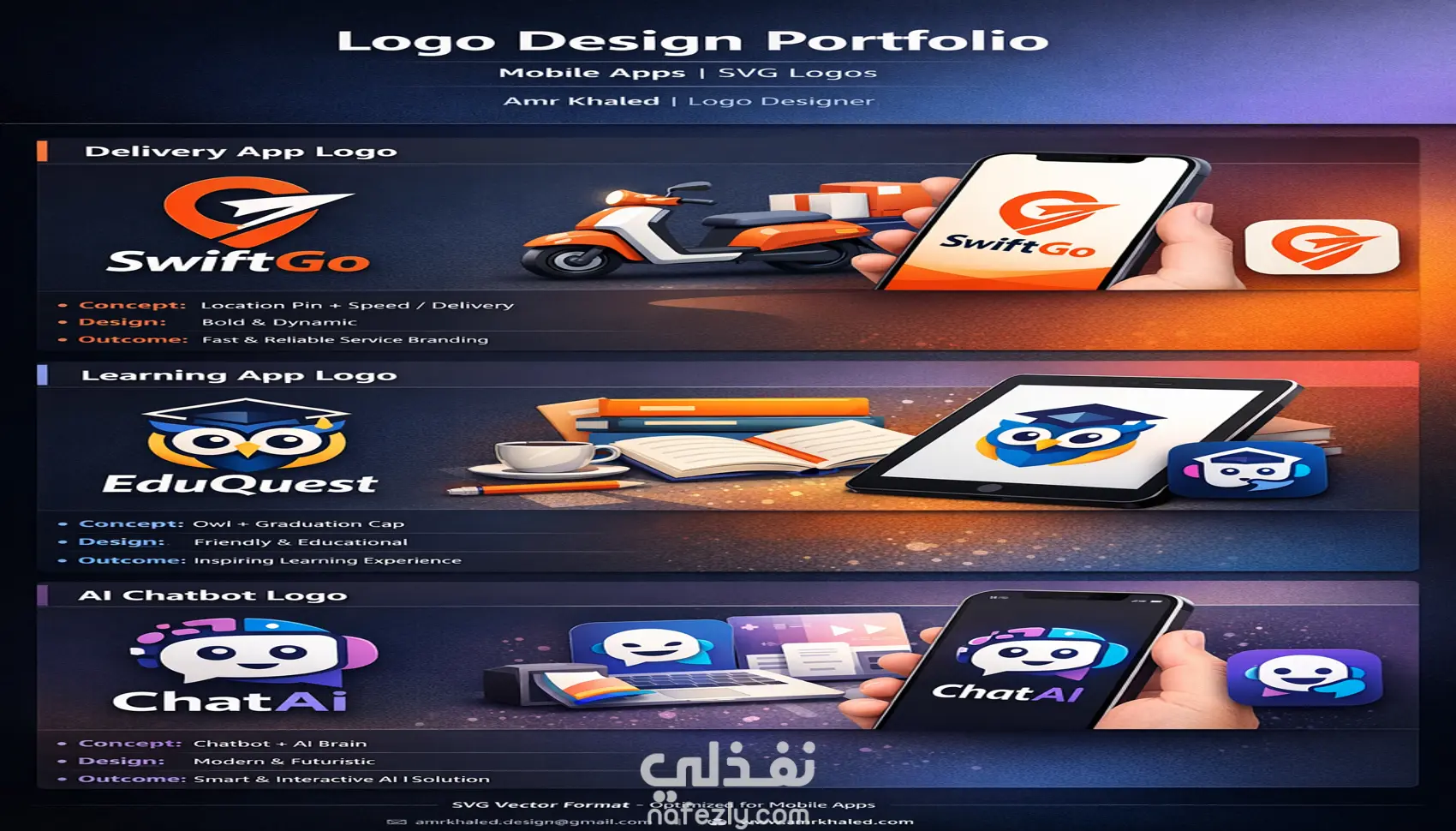 هل تبحث عن شعار احترافي يعبر عن فكرة تطبيقك ويجذب المستخدمين؟ أنا أقدم لك تصميم شعار (Logo) بصيغة SVG مخصص لتطبيقات الموبايل، مع التركيز على بناء Concept قوي يعكس هوية التطبيق وليس مجرد شكل.