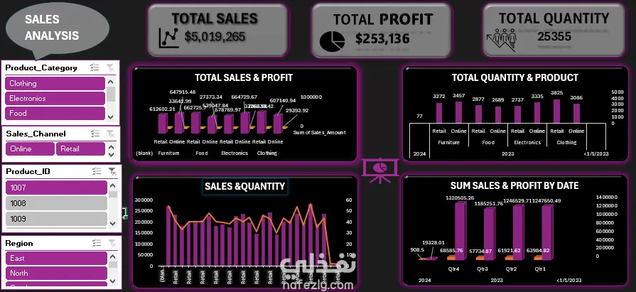 وجود فلاتر تفاعلية (Category – Region – Channel – Product) بتخلي المستخدم يتحكم في البيانات بسهولة.