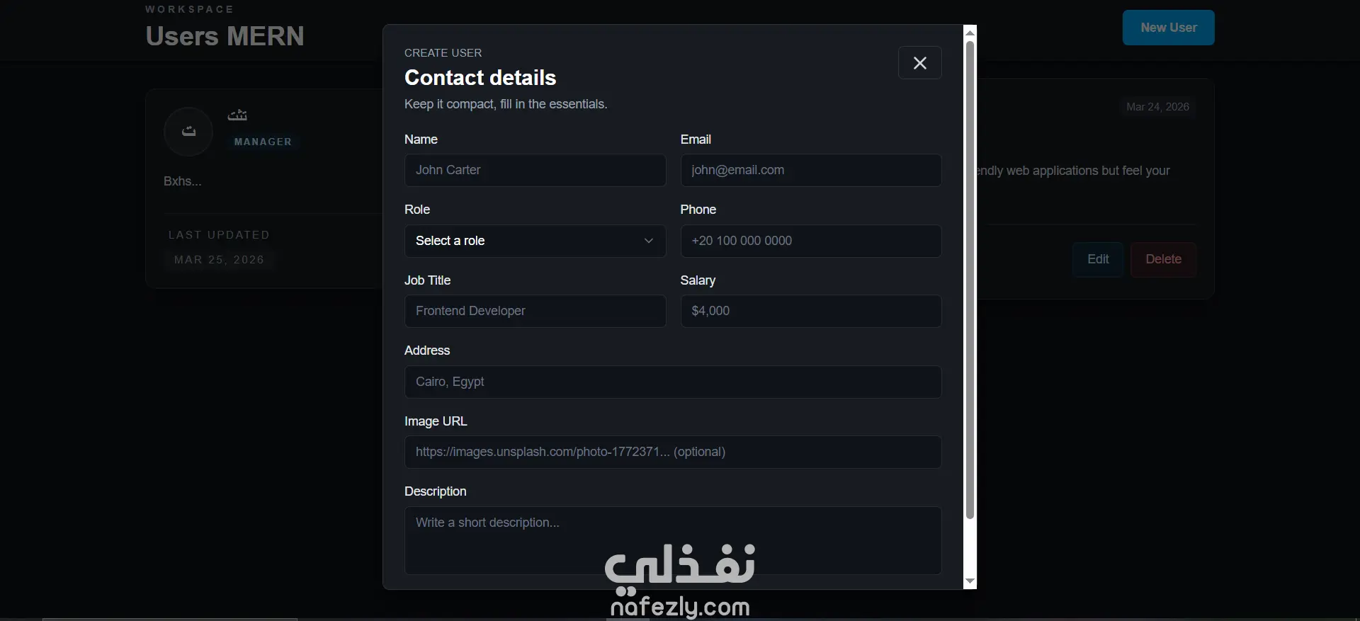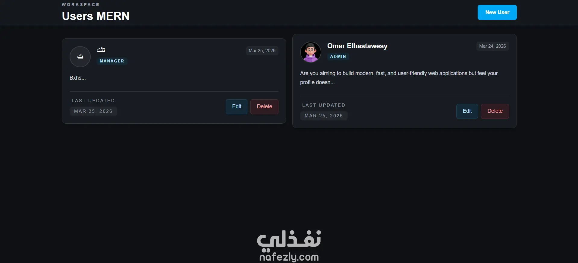 المشروع يحتوي على: • CRUD كامل للمستخدمين • Next.js + Tailwind UI بسيطة وResponsive • React Query لإدارة البيانات • React Hook Form + Zod validation • Backend باستخدام Express و MongoDB • Rate limiting باستخدام Upstash Redis الهدف من المشروع كان التدريب على: • بناء REST API • ربط Frontend مع Backend • تنظيم المشروع بطريقة clean structure الخطوه الجايه: • عمل Auth احترافي وتحويله ل dashbord. • تفعيل الصلاحيات لكل مستخدم. • عمل pagination لصفحه الـ users.