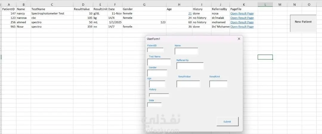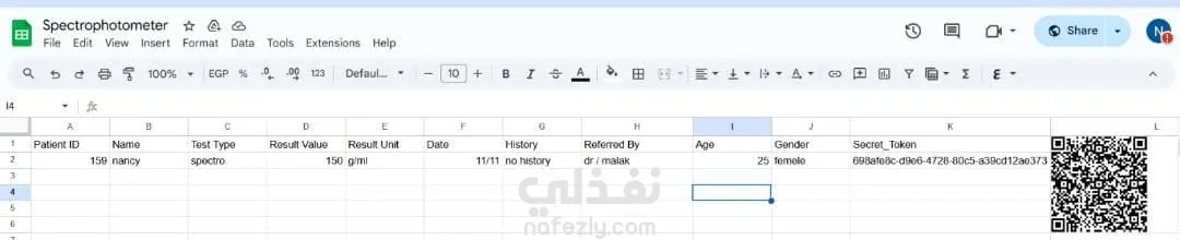 بالإضافة لكده، اشتغلت على جزء تنظيم البيانات، حيث قمت بعمل نظام بسيط باستخدام Excel وGoogle Sheets لتسجيل بيانات كل مريض، مع إنشاء QR Code أو Link خاص لكل حالة بحيث يتم إرسال النتائج له بشكل منظم وسهل الوصول.