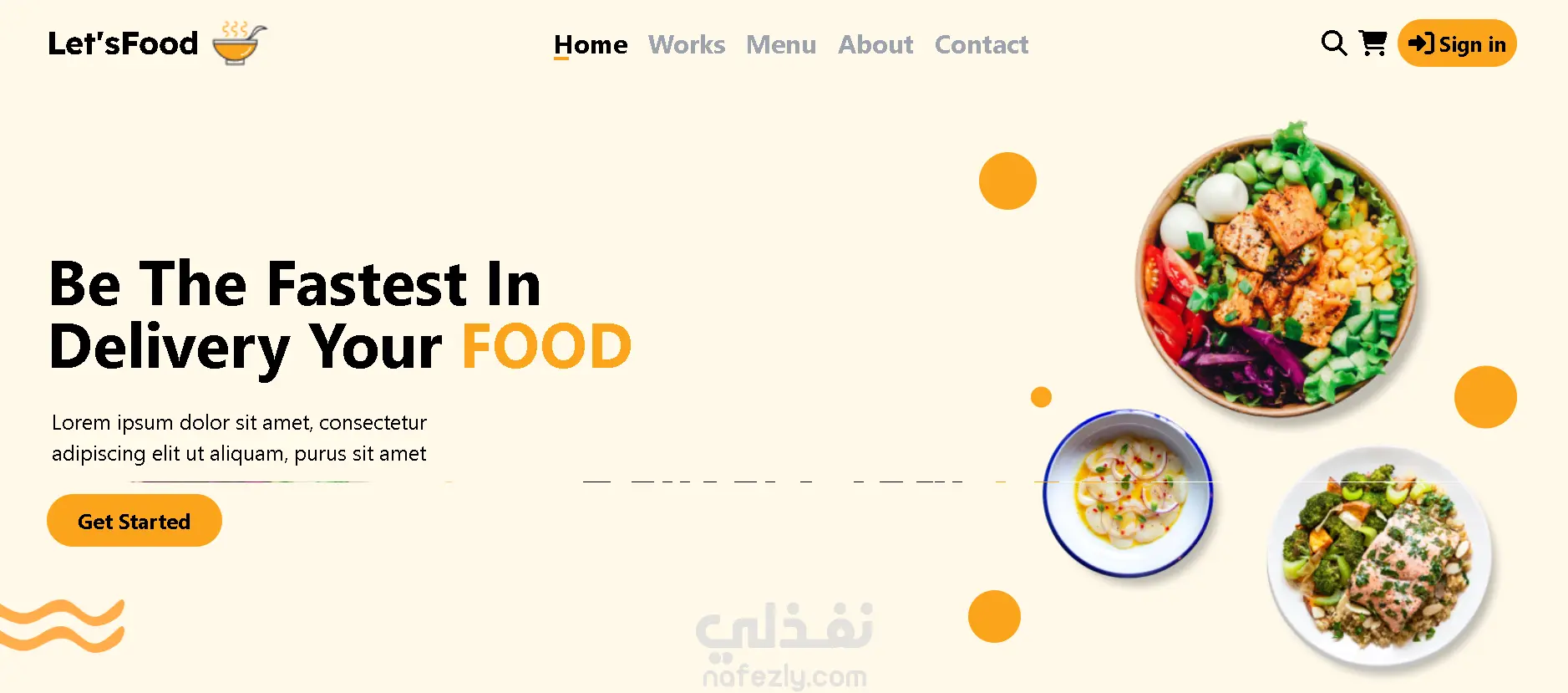 صفحة هبوط Let'sFood لطلب وتوصيل الطعام