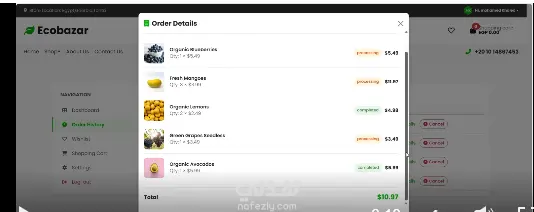 Eco Bazar هو متجر إلكتروني لبيع منتجات البقالة تم تصميم المشروع باستخدام HTML,CSS,JS, BOOTSTRAP الموقع يدعم: -عرض المنتجات والبحث والفلترة -الإضافة لسلة المشتريات -إتمام عملية الدفع -الإضافة لقائمة الأمنيات -داشبورد لكل بائع لمتابعة مبيعاته والطلبات الواردة -داشبورد أدمن لمتابعة المنتجات والبائعين