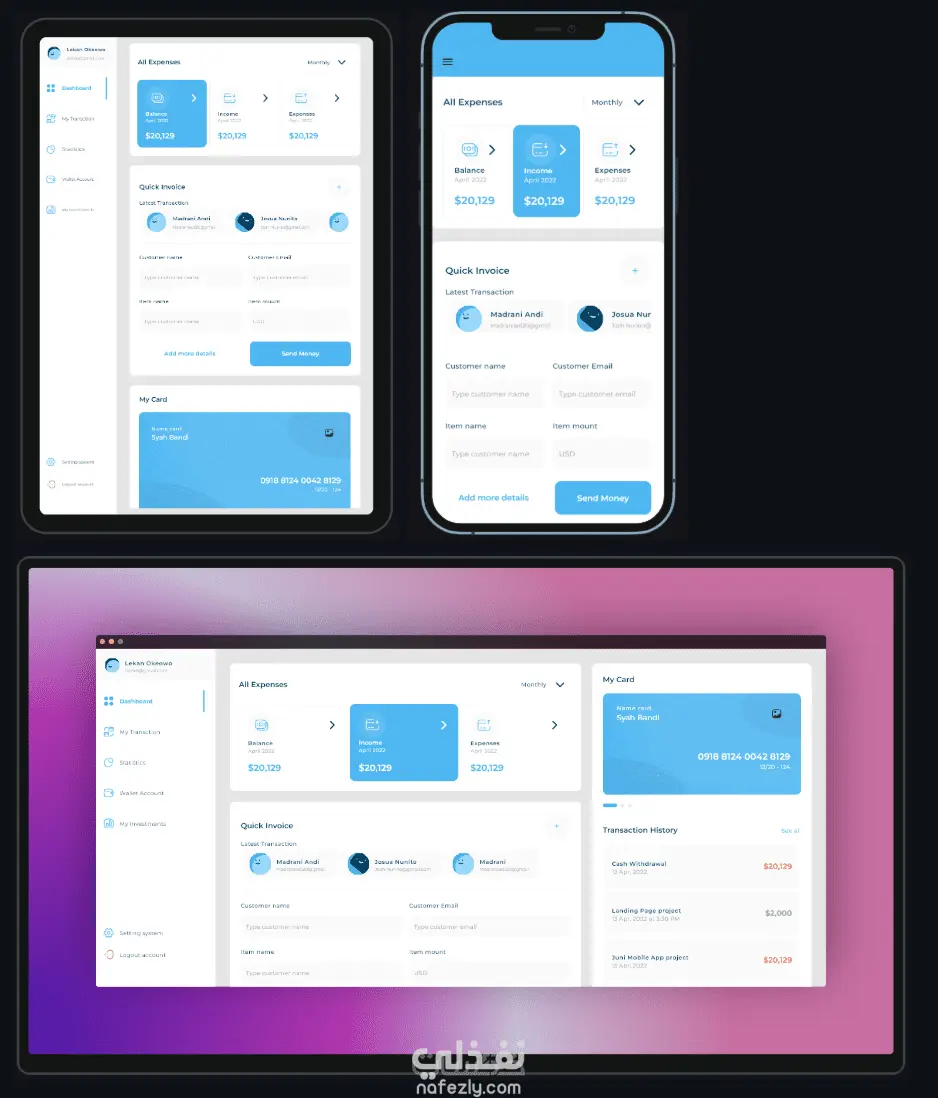 مشروع "HR Dashboard" هو لوحة تحكم حديثة تم تصميمها باستخدام Figma وتطويرها بواجهة مستخدم متجاوبة باستخدام Flutter، مع التركيز على تقديم تجربة استخدام سلسة عبر مختلف الأجهزة (موبايل – تابلت – كمبيوتر). يهدف التطبيق إلى عرض بيانات الموظفين، متابعة الأداء، وتنظيم العمليات الإدارية بشكل بصري واضح وسهل الاستخدام. مميزات: واجهة Dashboard احترافية عرض بيانات الموظفين والإحصائيات بشكل منظم تصميم عصري يركز على الوضوح وسهولة القراءة تصميم متجاوب (Responsive & Adaptive) يعمل بكفاءة على جميع أحجام الشاشات دعم كامل (Mobile / Tablet / Desktop) نظام تنقل (Navigation System) Drawer للتنقل بين الصفحات المختلفة تجربة استخدام سلسة وسريعة إدارة الحالة (State Management) استخدام Cubit لعرض البيانات وتحديث الواجهة بشكل ديناميكي تصميم معماري ذكي MainView مركزي يحدد نوع الواجهة حسب حجم الشاشة فصل بين Layouts المختلفة (Mobile / Tablet / Desktop) كل Layout يتفاعل مع اختيارات المستخدم بشكل مستقل