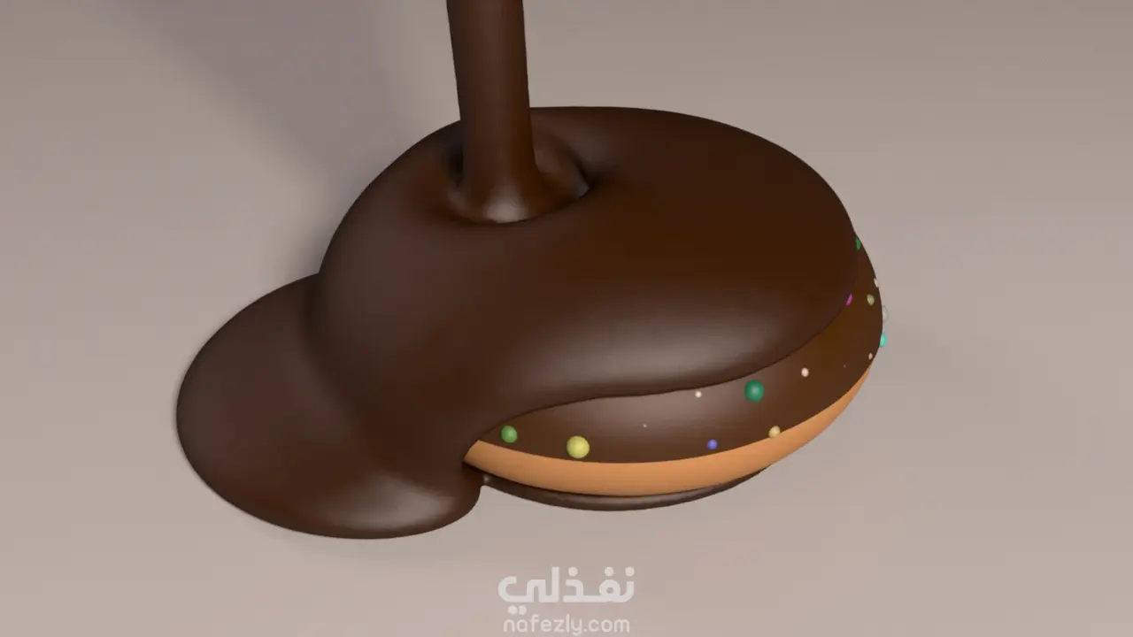تصميم ثلاثي الابعاد لدوناتس على برنامج هودينى مع محاكاه لسكب شيكولاتة عليها Houdini flip /fluid simulation