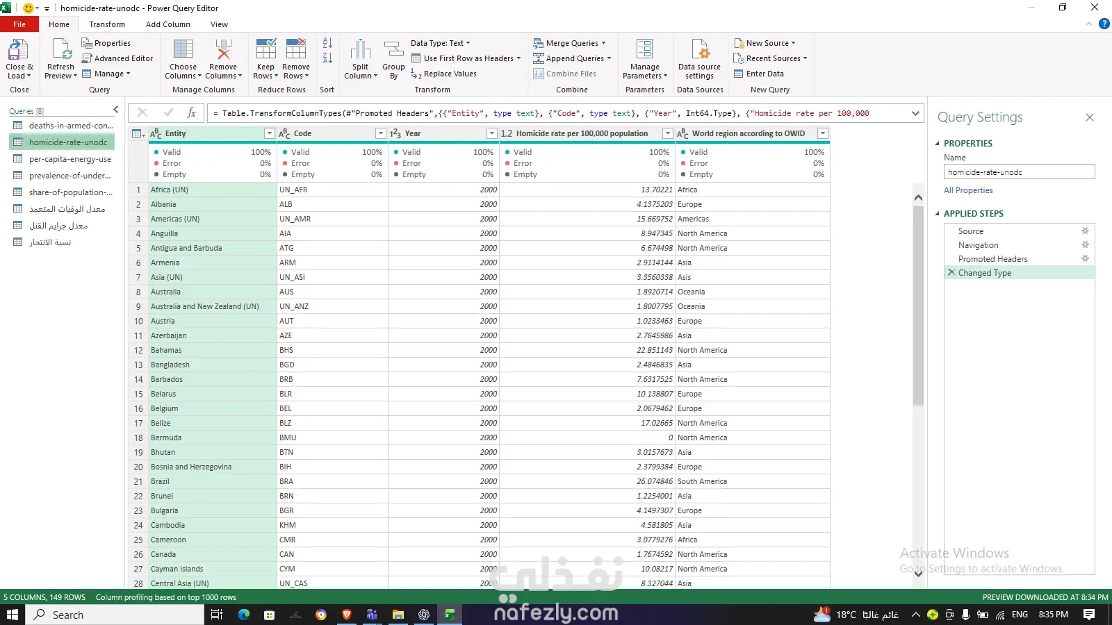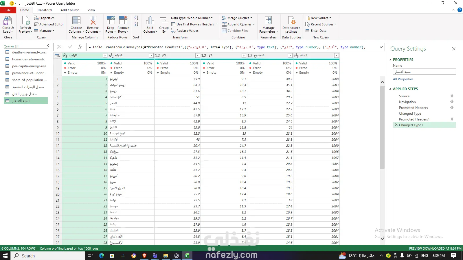 قمت في هذا المشروع بالعمل على مجموعة بيانات متنوعة وشاملة (تتضمن إحصائيات عالمية عن معدلات الجريمة، الطاقة، الفقر، والصحة)، حيث كانت البيانات في حالتها الأولية "الخام" تعاني من مشاكل في التنسيق، فقدان القيم، وتداخل البيانات. المهام التي قمت بتنفيذها: هيكلة البيانات (Data Structuring): تحويل الجداول غير المنظمة (Unstructured) إلى صيغ جداول منظمة (Structured CSV/Excel) يسهل التعامل معها برمجياً أو عبر أدوات التحليل. تنظيف البيانات (Data Cleaning): إزالة الصفوف والأعمدة الزائدة وغير الضرورية. معالجة القيم المفقودة (Null values/N/A) وتوحيد تنسيقها. تصحيح الأخطاء في أسماء الدول والرموز (Entities & Codes) لضمان دقة الربط الجغرافي. توحيد التنسيقات (Formatting): توحيد صيغ الأرقام والتواريخ والنسب المئوية عبر جميع الملفات لضمان اتساق البيانات. إعداد البيانات للتحليل (Data Pre-processing): تجهيز الملفات لتكون صالحة للاستخدام المباشر في أدوات تحليل البيانات مثل (Excel Power Pivot, Power BI, Tableau) أو باستخدام لغات البرمجة مثل Python (Pandas).