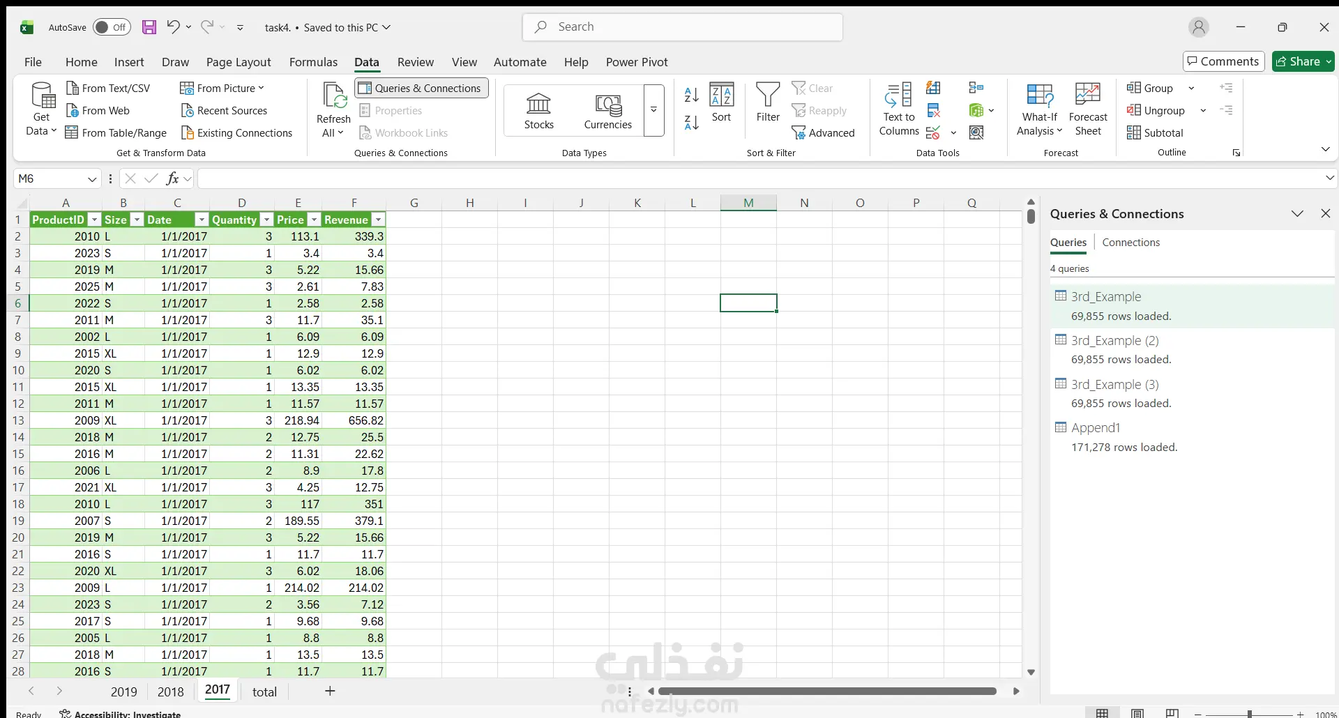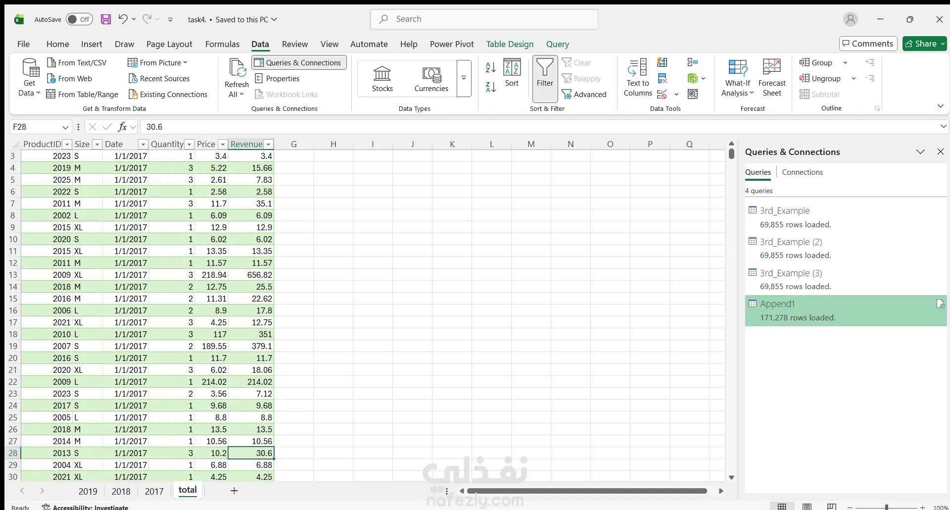 دمج ملفات المبيعات للسنوات الثلاث في مجموعة بيانات واحدة