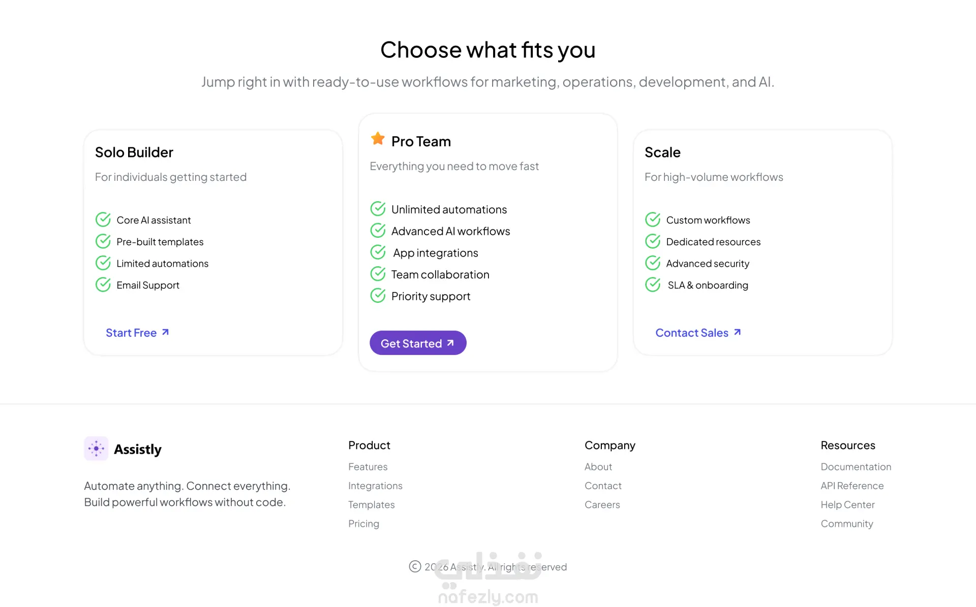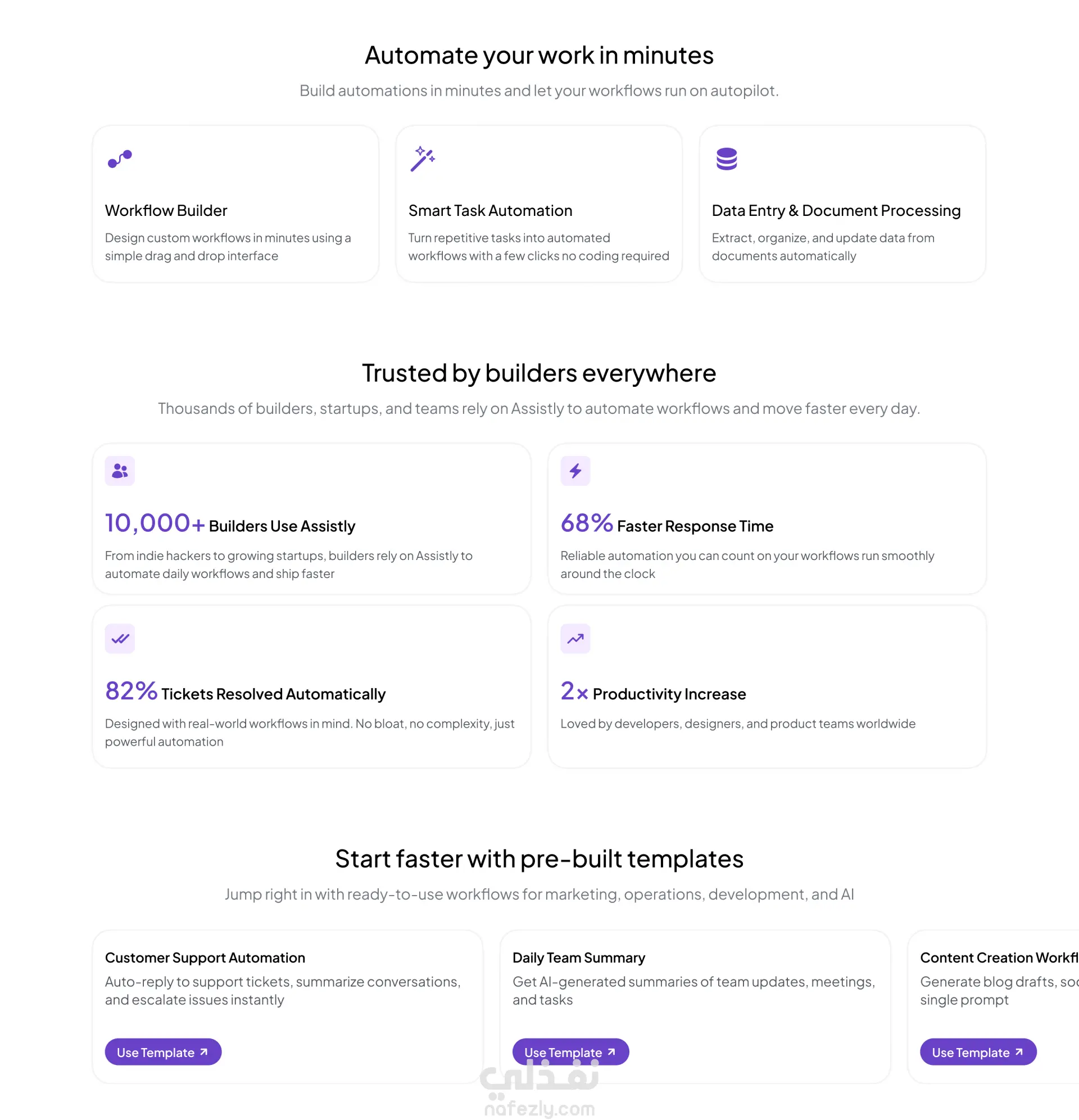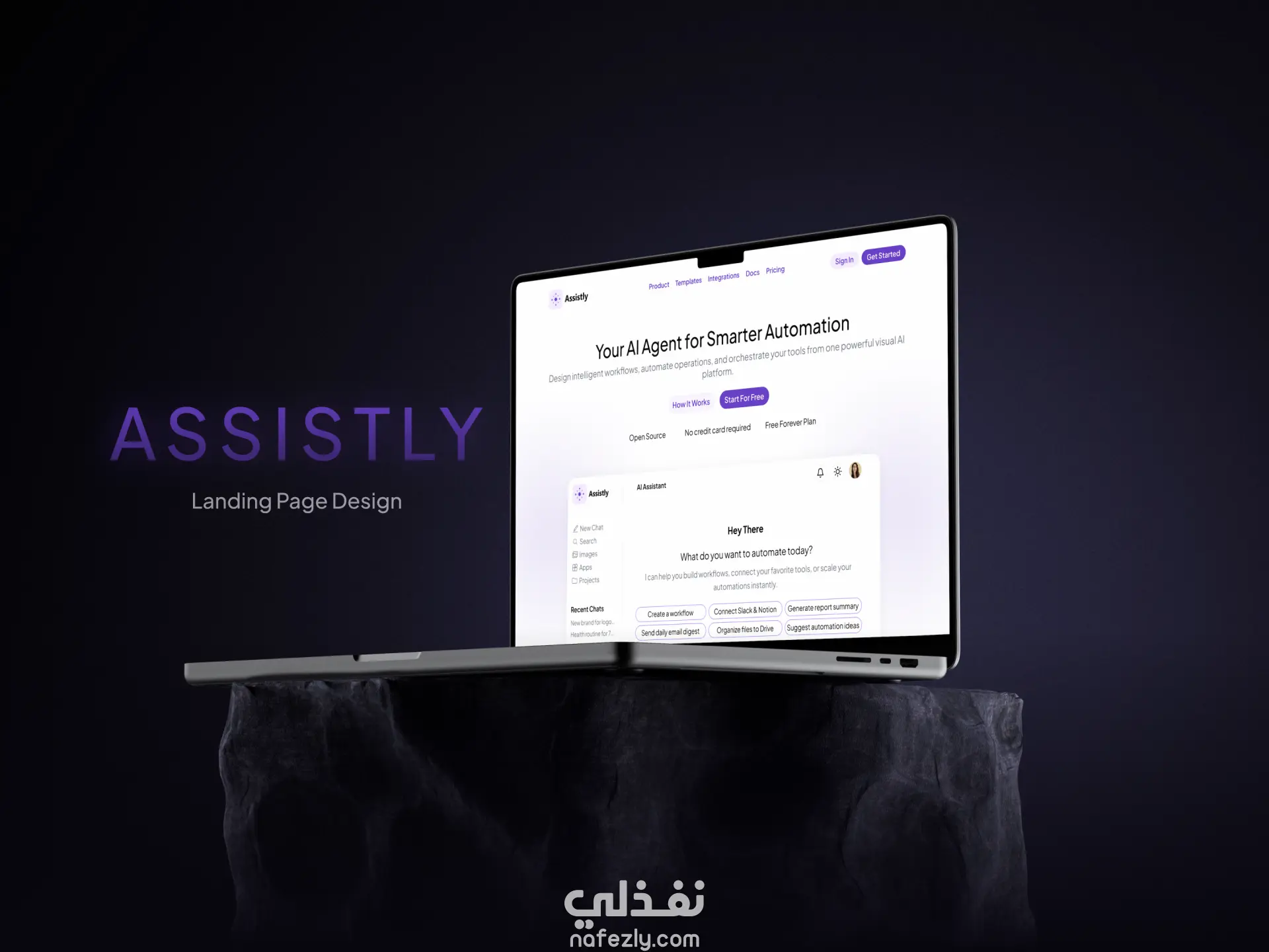 تصميم صفحة هبوط احترافية لمنتج SaaS، وهو AI Assistant يسمى Assistly مبني على تقنيات الذكاء الاصطناعي موجّه للشركات والمستخدمين الأفراد.