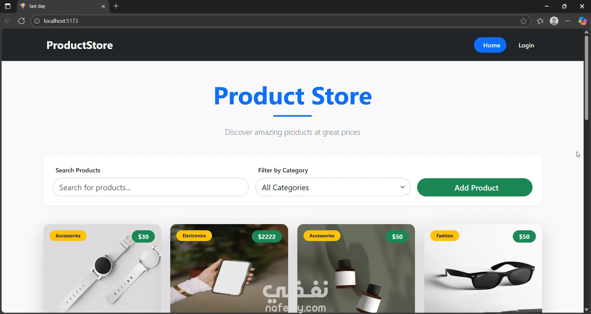 نظام إدارة المنتجات باستخدام React (Product Management Dashboard)