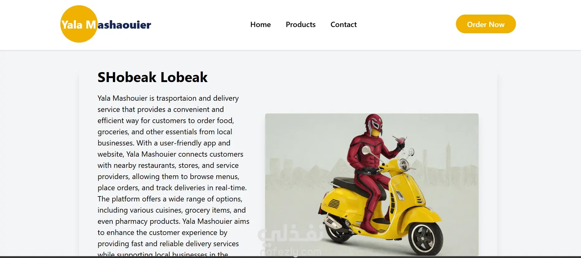 يلا مشاوير هو موقع لشركة شحن ناشئة يقدم من خلالها العديد من مختلف المنتجات للجهات اللتي تتعامل معاها يمكن للمستخدم الطلب و الدفع من خلال الموقع بسهولة