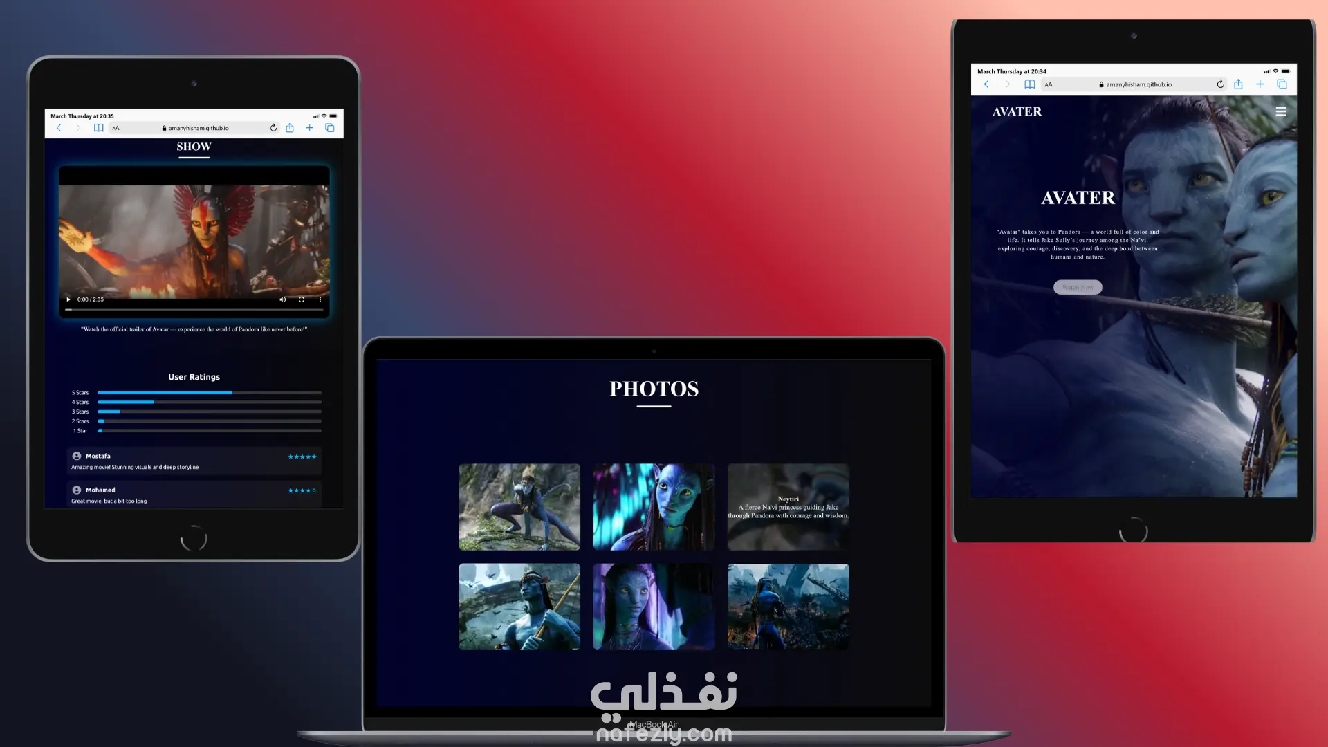 بناء واجهة ويب مخصصة لعرض الوسائط المتعددة (صور وفيديوهات) بشكل منظم مع توفير ميزة لتقييمات المستخدمين. المميزات الرئيسية: شبكة عرض صور (Responsive Grid) سلسة وسريعة التنقل. دمج مشغل فيديو مدمج لعرض المقاطع الترويجية. عرض التقييمات والمراجعات بأسلوب واضح واحترافي. تطوير الواجهة الأمامية بالاعتماد على (HTML5, CSS3, JavaScript).