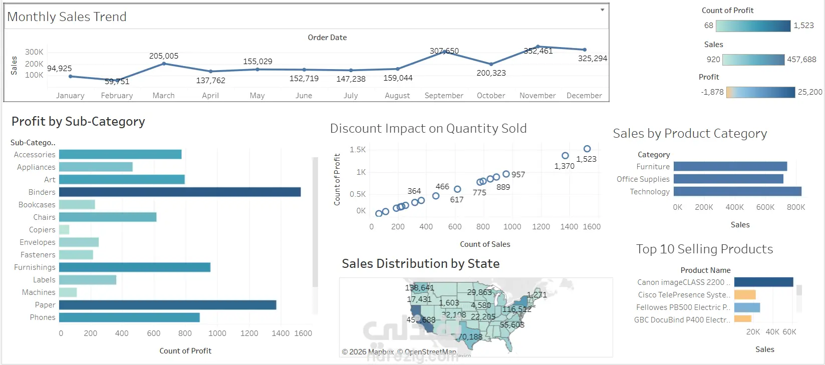 Sales Distribution by State: Map visualization to see where sales are coming from geographically