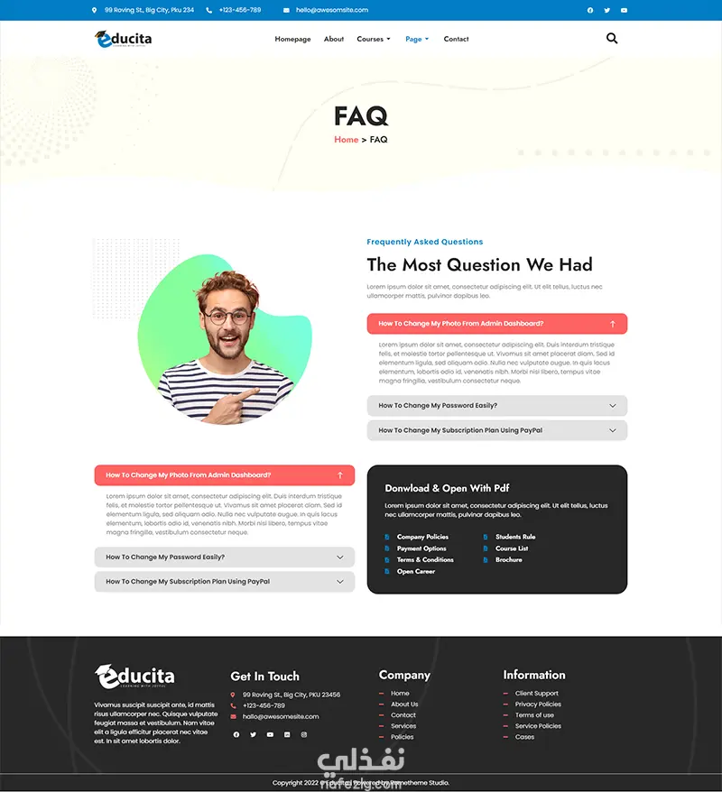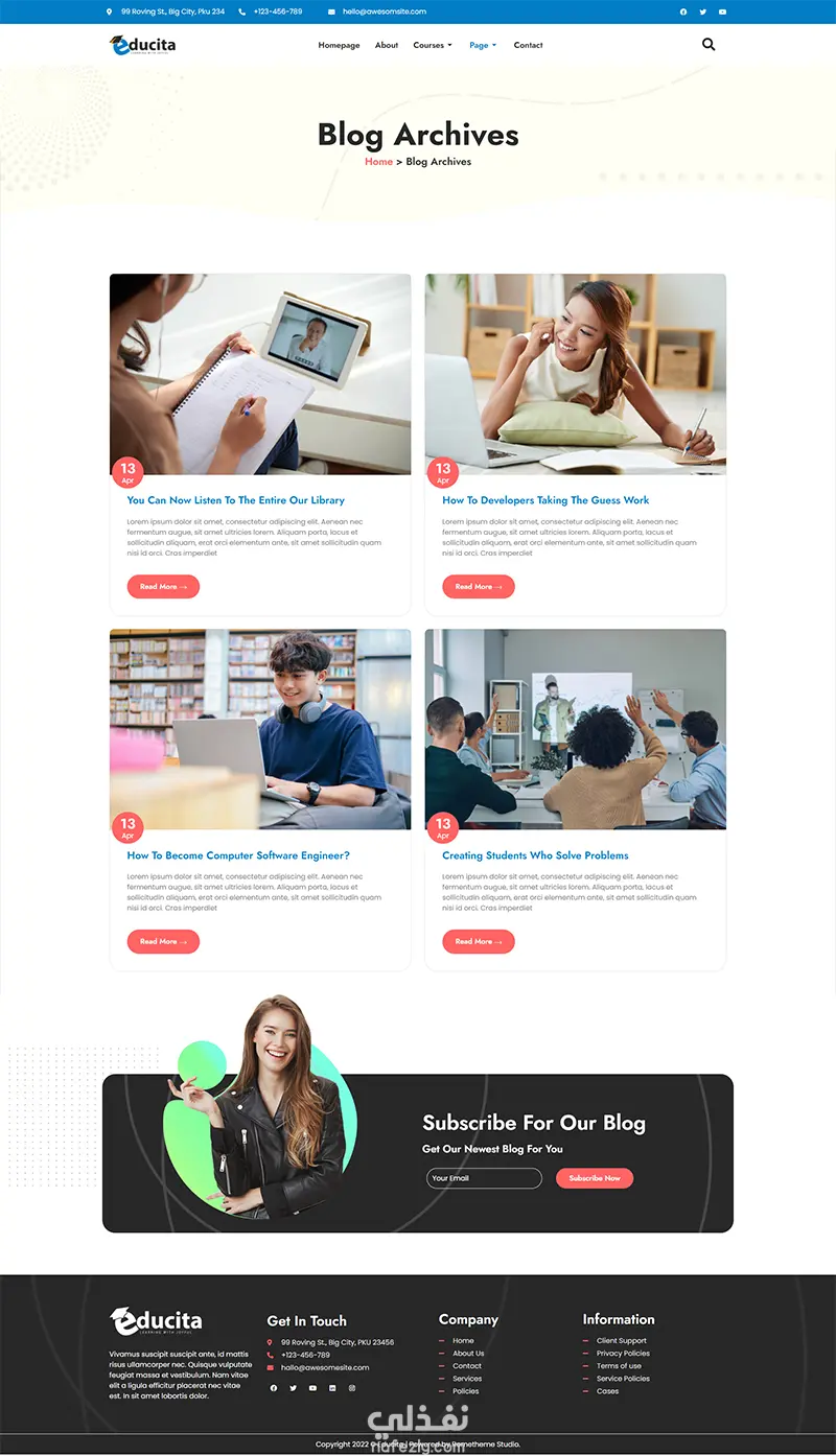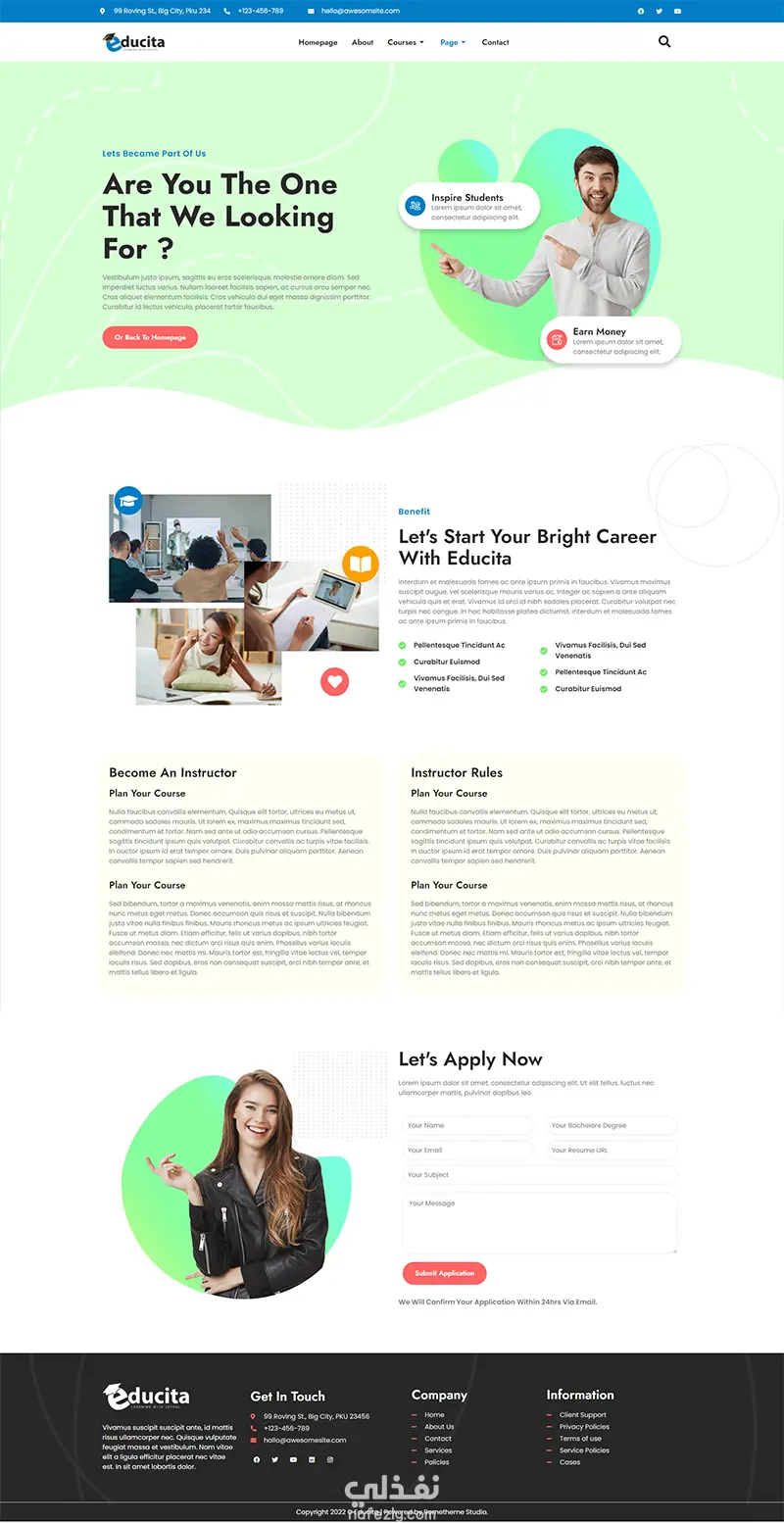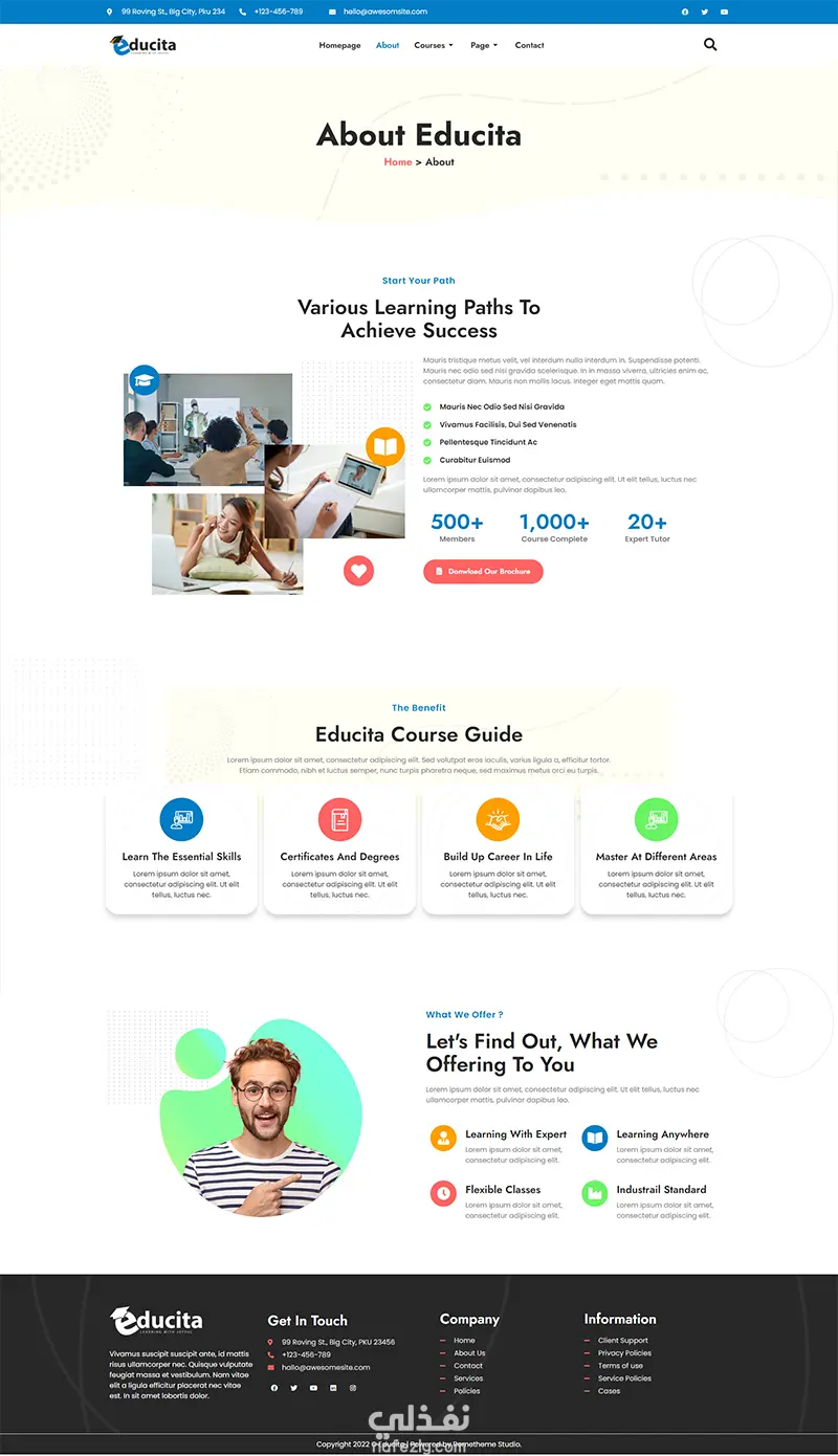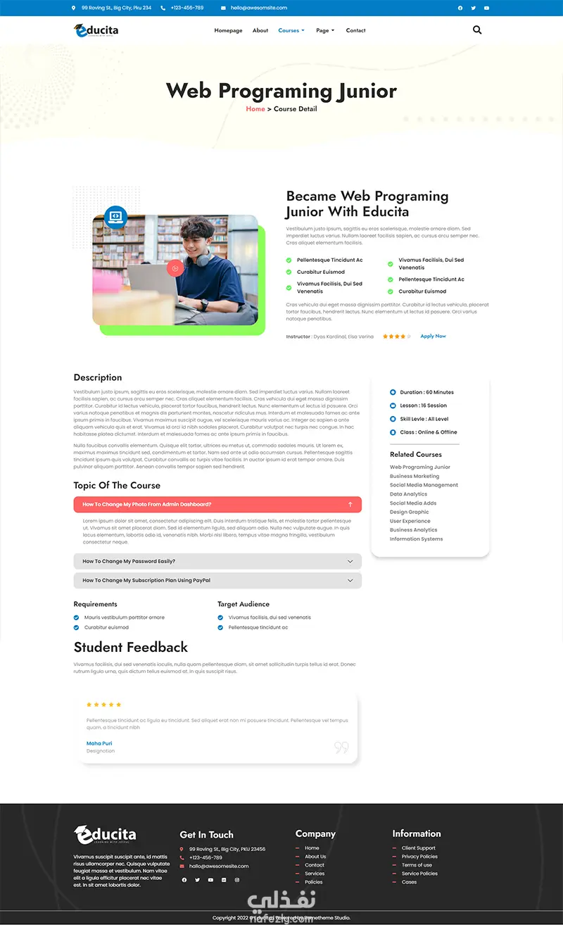 تصميم موقع أكاديمي لتقديم الدورات والكورسات أونلاين، مع نظام تسجيل الطلاب