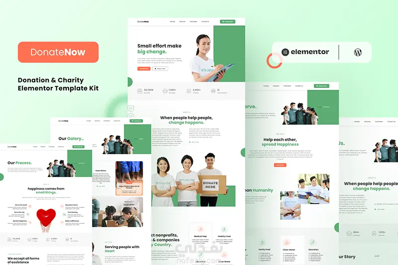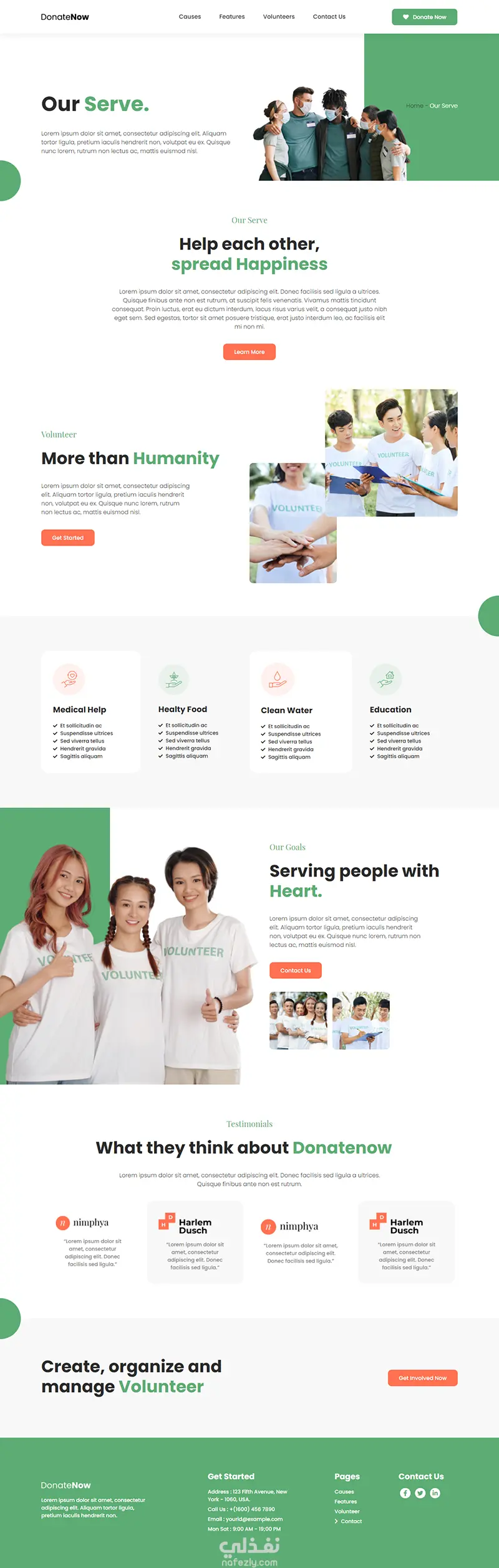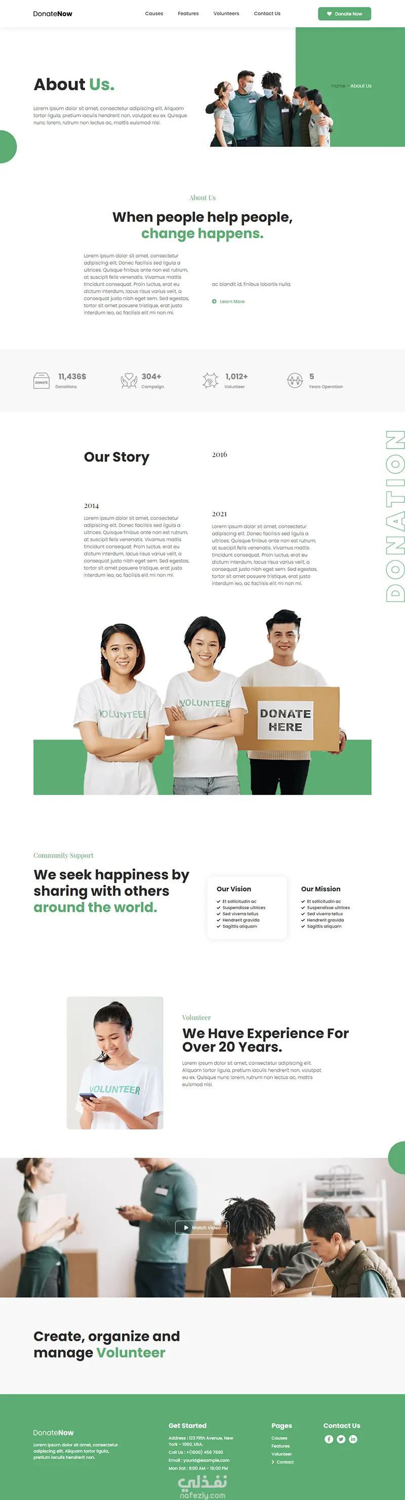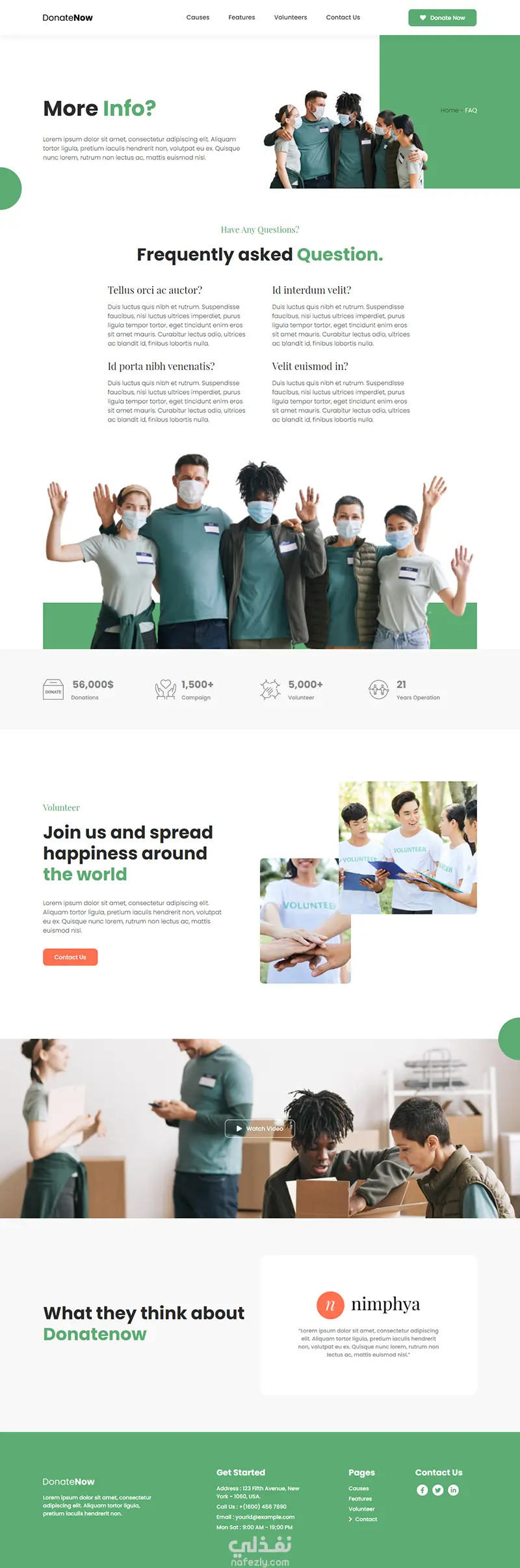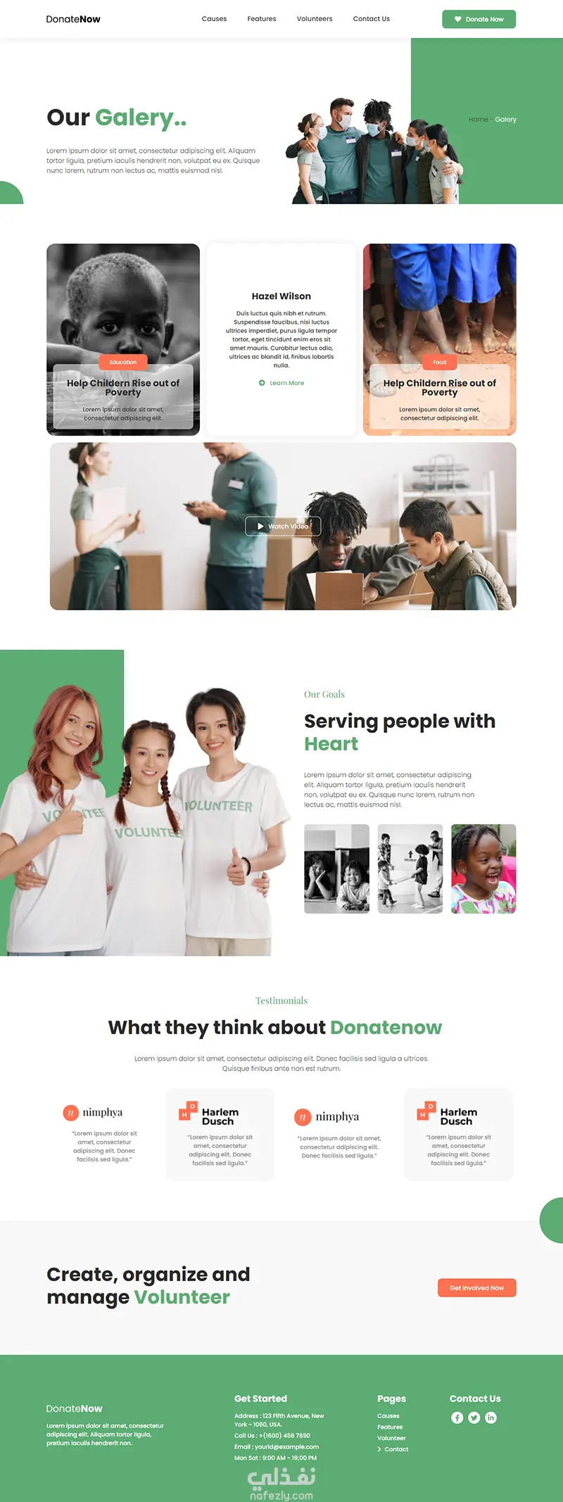 تصميم موقع خيري لجمع التبرعات، مع صفحات للحملات، عرض الحالات الإنسانية، ونظام تبرع أونلاين مع نموذج تواصل