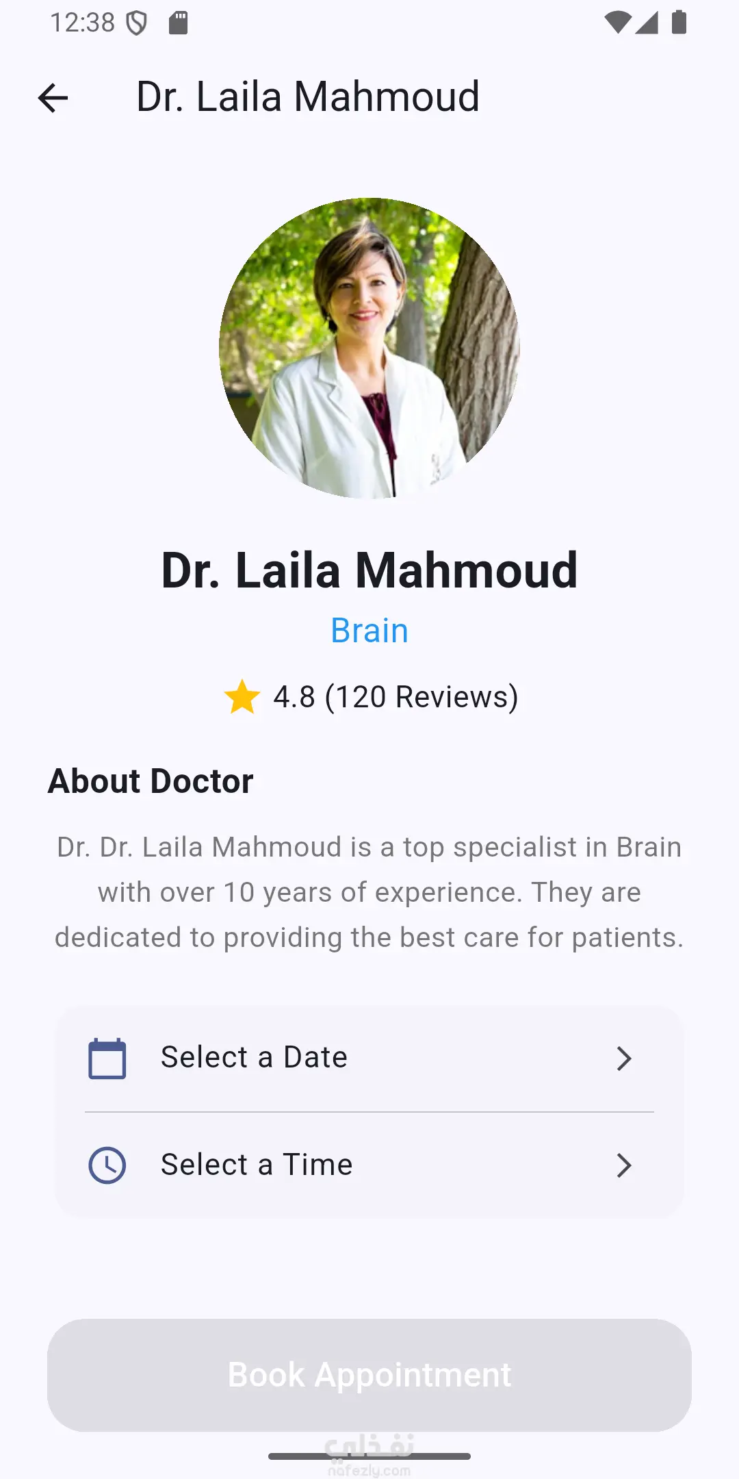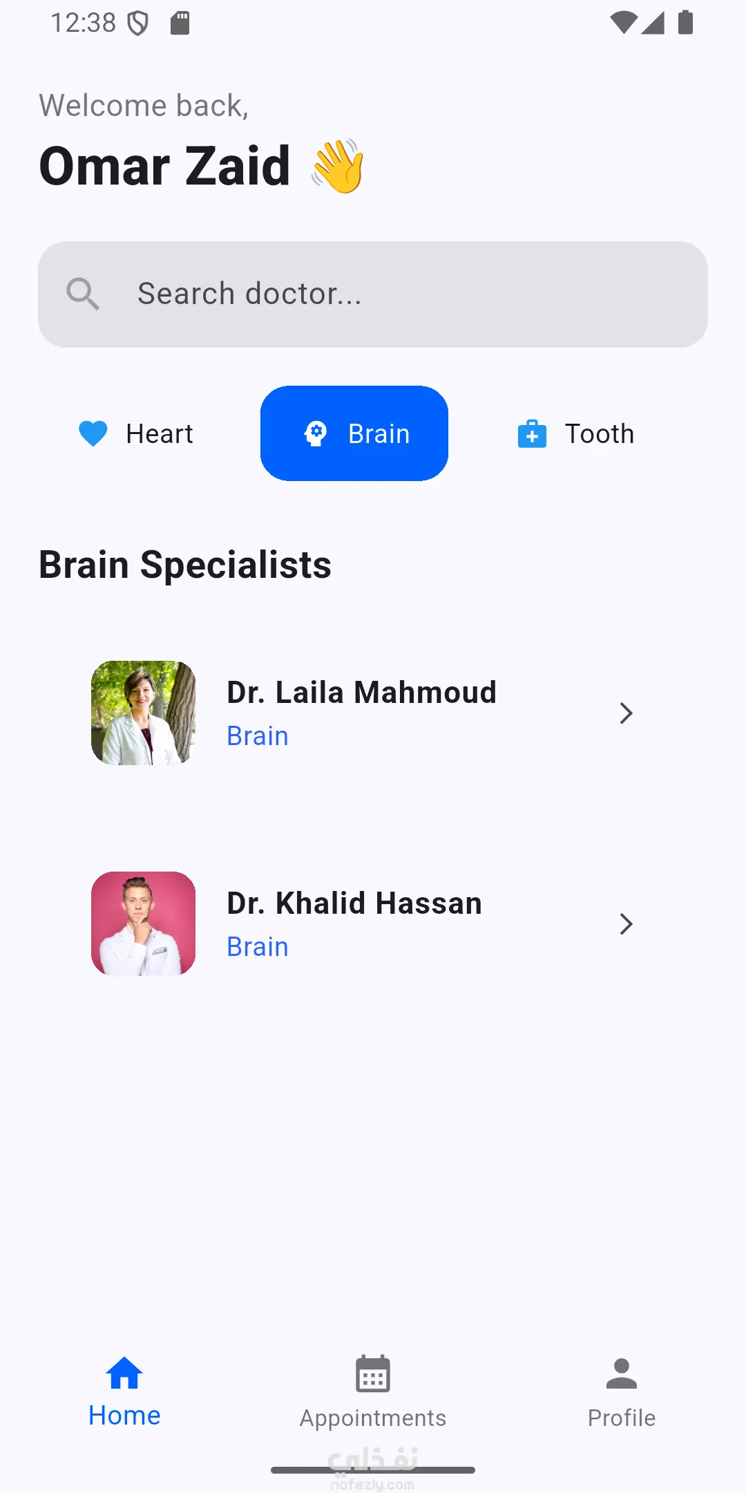 تطبيق موبايل متكامل لحجز المواعيد الطبية، يتيح للمرضى تصفح الأطباء حسب التخصص (قلب، مخ وأعصاب، أسنان...) والاطلاع على ملفاتهم الشخصية وحجز المواعيد بسهولة. يحتوي التطبيق على شاشة تسجيل دخول احترافية بخلفية طبية مميزة، وصفحة رئيسية تعرض التخصصات مع قائمة الأطباء المتاحين، بالإضافة إلى إدارة المواعيد المحجوزة وملف المستخدم الشخصي. تم التركيز على تجربة مستخدم سلسة وتصميم واضح يناسب القطاع الصحي.