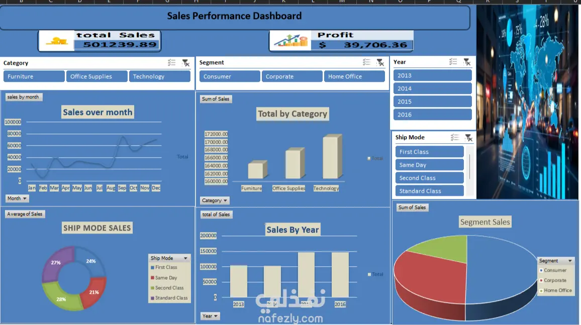 عنوان المشروع: لوحة تحكم تفاعلية لتحليل أداء المبيعات (Sales Performance Dashboard) وصف المشروع: قمت بتصميم وتطوير لوحة تحكم (Dashboard) احترافية وتفاعلية باستخدام برنامج Microsoft Excel، تهدف إلى تحويل البيانات الخام المعقدة إلى رؤى بصرية سهلة القراءة تساعد أصحاب القرار في تتبع أداء المبيعات والأرباح بدقة. المميزات التقنية في اللوحة: تحليل المؤشرات الرئيسية (KPIs): عرض فوري لإجمالي المبيعات وصافي الأرباح. تفاعلية كاملة (Interactive Slicers): إمكانية تصفية البيانات بنقرة واحدة حسب (السنة، فئة المنتج، شريحة العملاء، وطريقة الشحن). تحليل زمني (Time-Series Analysis): رسم بياني لمراقبة تذبذب المبيعات على مدار أشهر السنة لتحديد مواسم الذروة. توزيع الحصص السوقية: استخدام المخططات الدائرية (Pie & Donut Charts) لبيان نسب المبيعات حسب طرق الشحن وشرائح المستهلكين. مقارنة الفئات: أعمدة بيانية توضح الفئات الأكثر مبيعاً والأكثر ربحية (التكنولوجيا، الأثاث، إلخ). المهارات المستخدمة: تنظيف وتنسيق البيانات (Data Cleaning). استخدام الجداول المحورية (Pivot Tables). تصميم واجهات المستخدم (Dashboard UI Design) داخل إكسيل. ربط الرسوم البيانية بالمقسمات (Slicers) لضمان تجربة مستخدم سلسة.