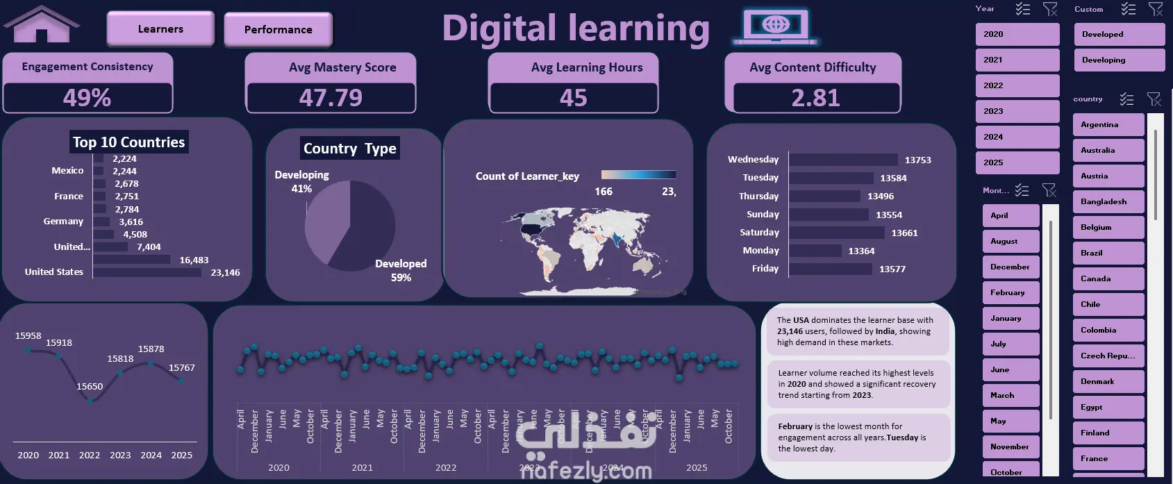 لوحة بيانات أداء التعلم الإلكتروني || Online Learning Performance Dashboard