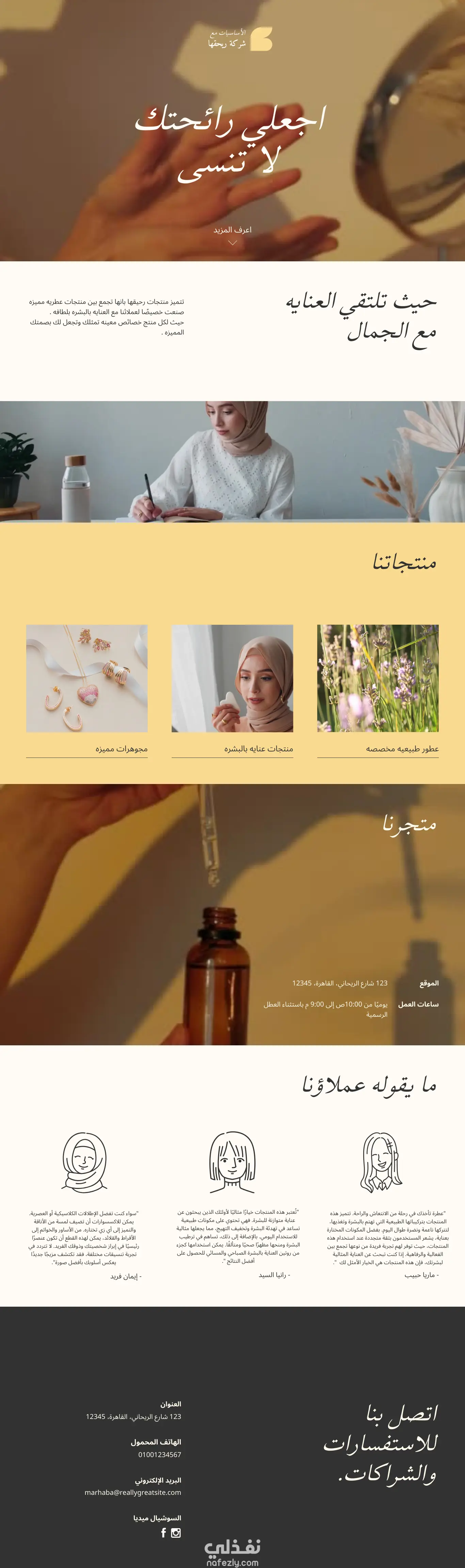 في هذا المشروع، قمت بتطوير هوية بصرية كاملة تعكس الأناقة والرفاهية لبراند (رحيق الحياة). شمل العمل تصميم الشعار (Logo)، المطبوعات الرسمية (البزنس كارد والفواتير) لضمان اتساق العلامة التجارية في كل نقاط التواصل مع العميل. كما قمت بتصميم واجهة الموقع الإلكتروني (Landing Page) مع التركيز على تجربة المستخدم (UX) لضمان سهولة التصفح وجذب العميل بصرياً.
