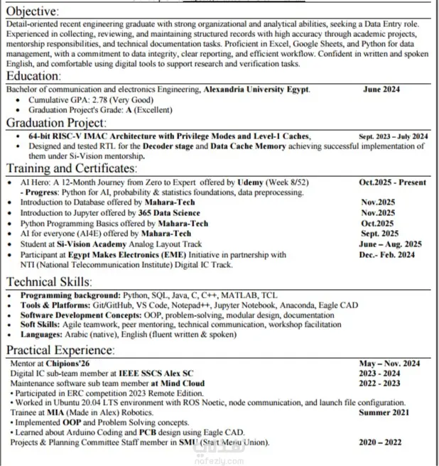 السيرة الذاتية ليست مجرد ورقة، بل هي بوابتك للمقابلة الشخصية. أقدم لكِ خدمة تصميم وصياغة السيرة الذاتية بأسلوب احترافي يجمع بين الجمال البصري والكفاءة التقنية. مميزات الخدمة: التوافق مع الـ ATS: أضمن لكِ تنسيقاً تتعرف عليه أنظمة الفحص الآلي بكفاءة. صياغة المحتوى: إعادة صياغة المهام الوظيفية بأسلوب (Action Verbs) لإبراز الإنجازات وليس فقط الواجبات. التنسيق البصري: تصميم عصري، مريح للعين، ومنظم يسهل على مسؤول التوظيف قراءته في ثوانٍ. اللغة: التدقيق اللغوي الكامل (عربي/إنجليزي) لضمان خلوها من الأخطاء. المرونة: تسليم الملف بصيغة PDF جاهزة للطباعة، مع إمكانية التعديل حتى الرضا التام.