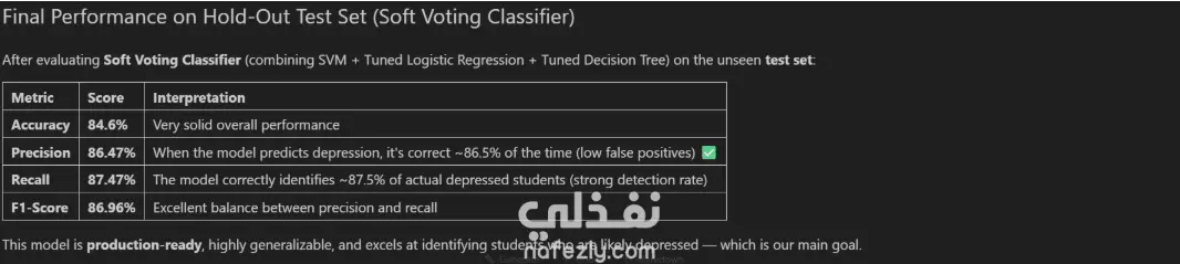 في هذا المشروع قمت بتحليل بيانات تتعلق بحياة الطلاب مثل العادات اليومية، الظروف الدراسية، والوضع المالي بهدف فهم العوامل التي قد تؤثر على الصحة النفسية للطلاب. بدأت بتنظيف البيانات وتحليلها باستخدام التحليل الاستكشافي للبيانات (EDA) لاكتشاف الأنماط والعلاقات بين المتغيرات المختلفة. بعد ذلك قمت ببناء نموذج تعلم آلة للتنبؤ باحتمالية إصابة الطالب بالاكتئاب بناءً على مجموعة من العوامل المرتبطة بأسلوب الحياة والظروف الدراسية. تمكن النموذج من تحقيق دقة تصل إلى حوالي 80%. يساعد هذا النوع من التحليل المؤسسات التعليمية والباحثين على فهم العوامل المؤثرة في الصحة النفسية للطلاب واتخاذ خطوات لتحسين البيئة التعليمية