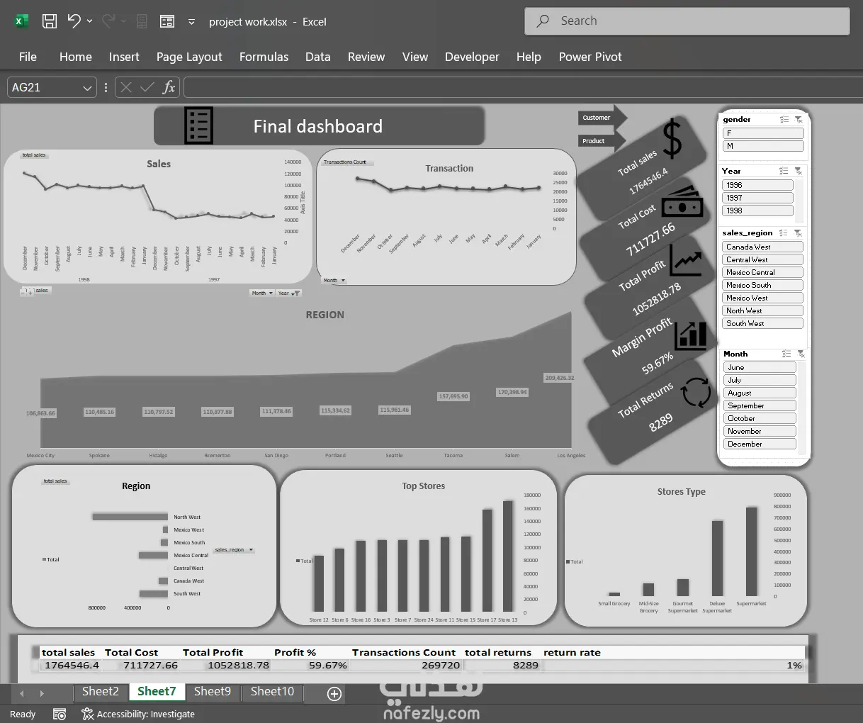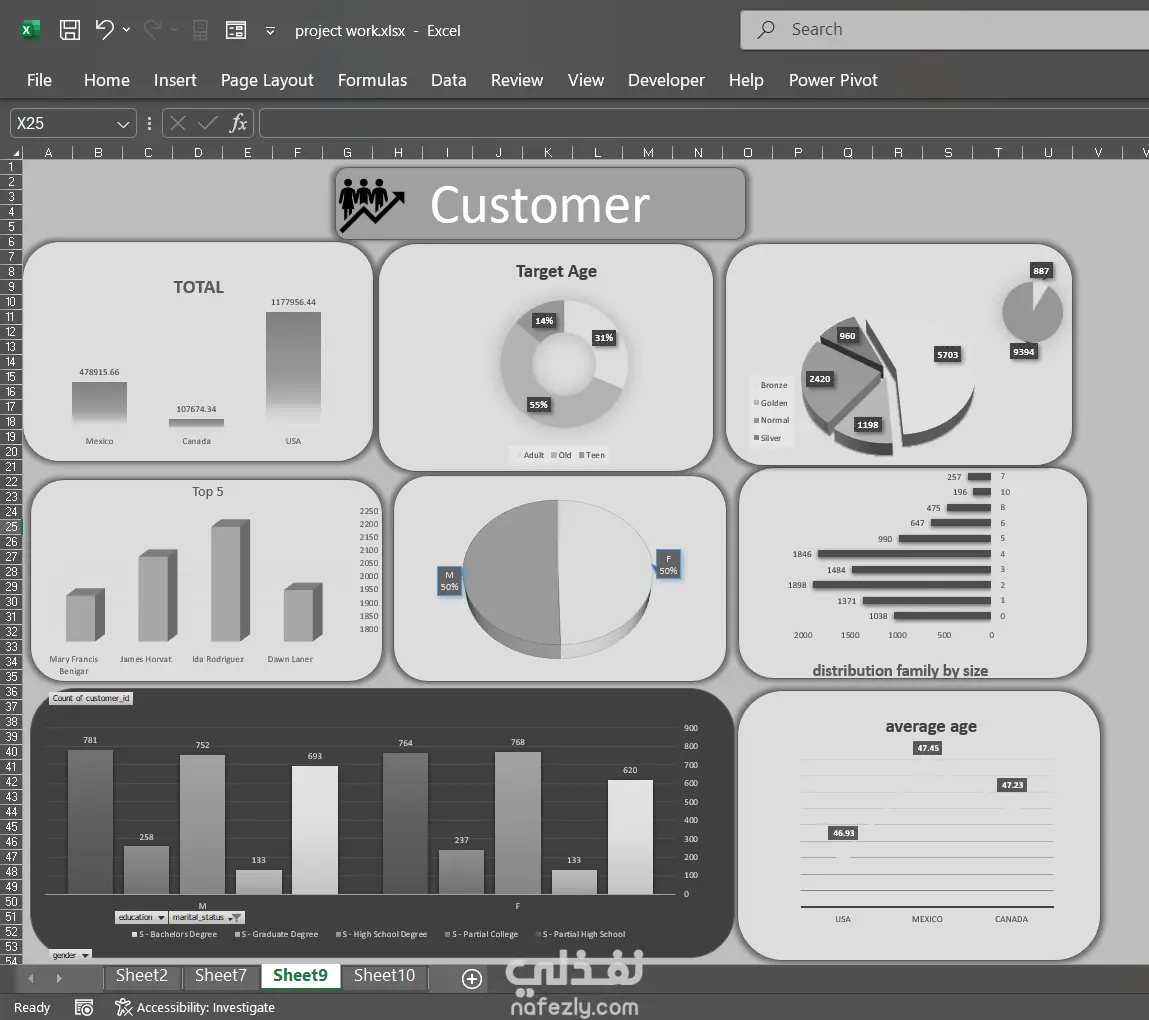 تحليل مبيعات والتوزيع الديموغرافى للعملاء واظهار اهم KPIs و charts التى تعطى فهما كاملا للعمل وتساعد على اتخاذ القرارات