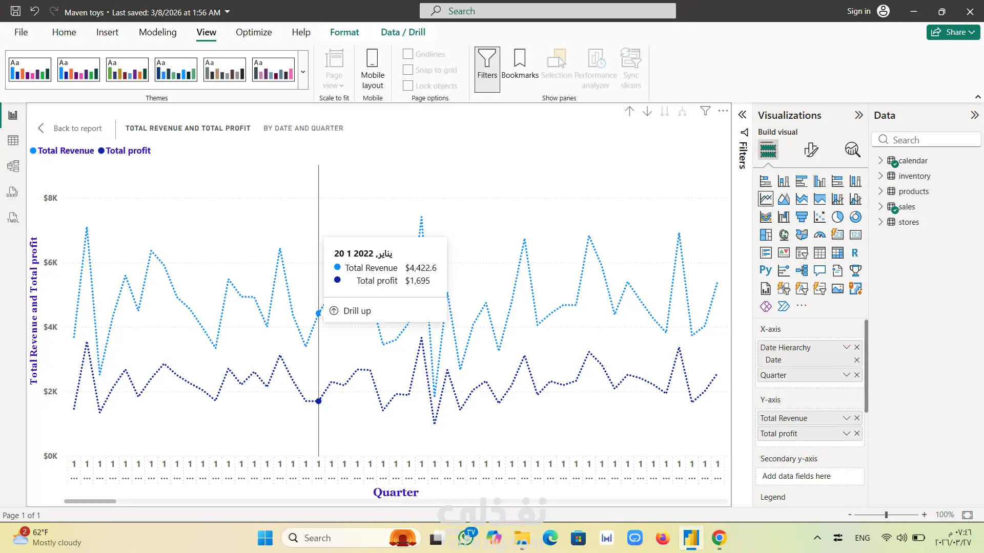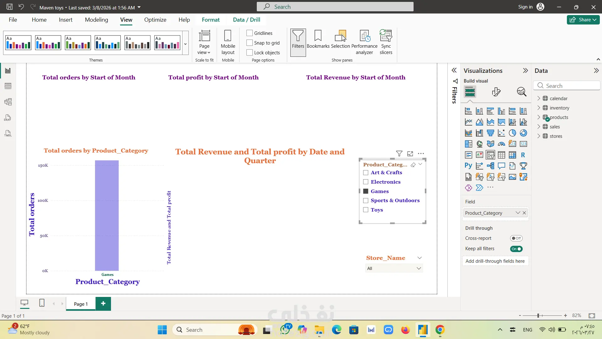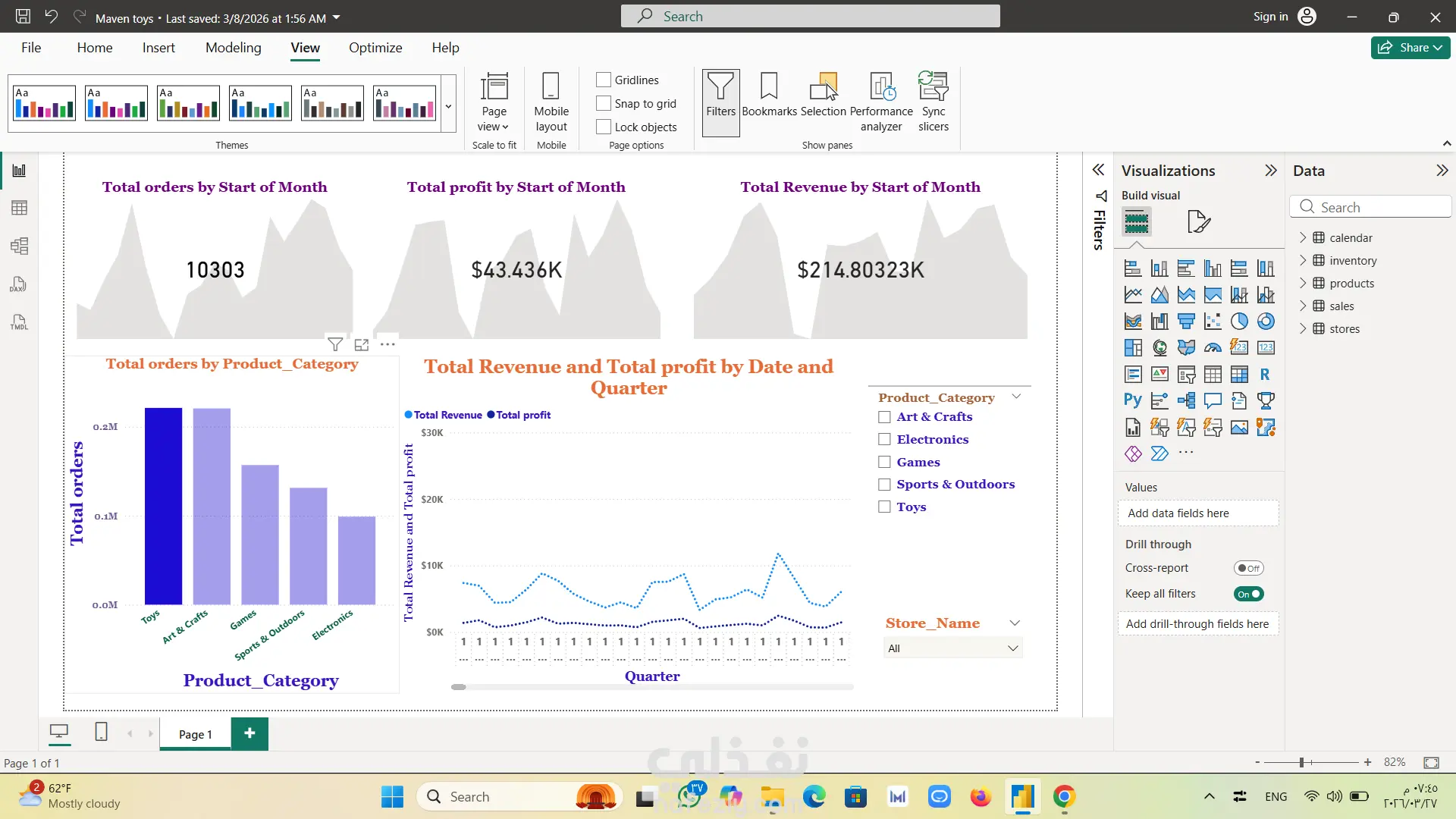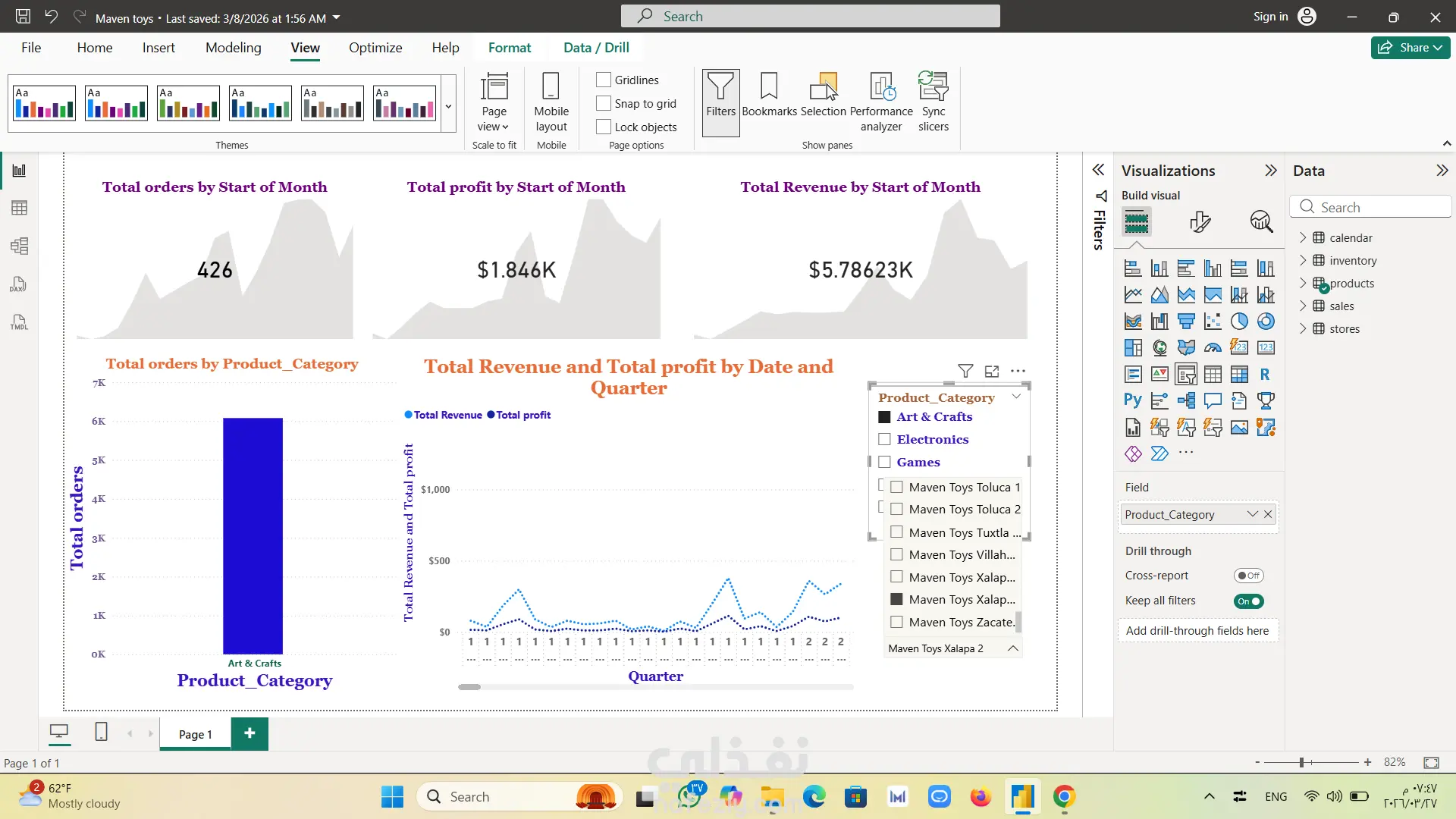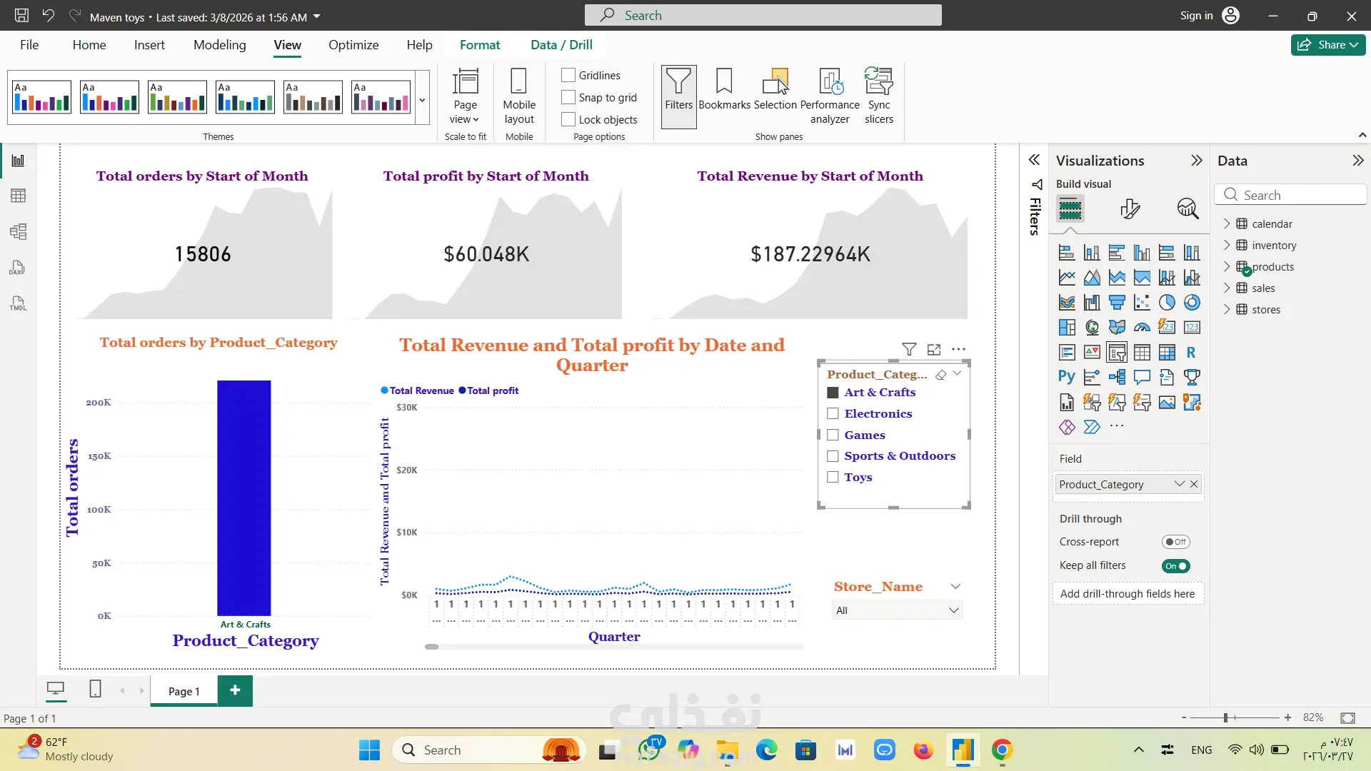 أقدم لك خدمة تصميم Dashboard احترافي لتحليل بيانات Maven Toys بطريقة سهلة وواضحة تساعدك على اتخاذ قرارات دقيقة وسريعة.